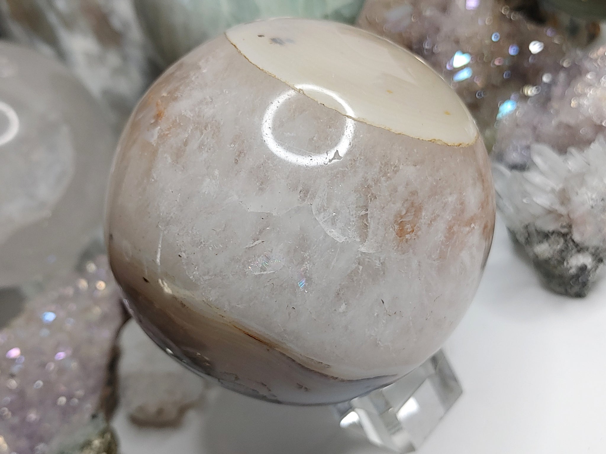 3" Agate Rainbow Quartz Crystal Sphere with Base