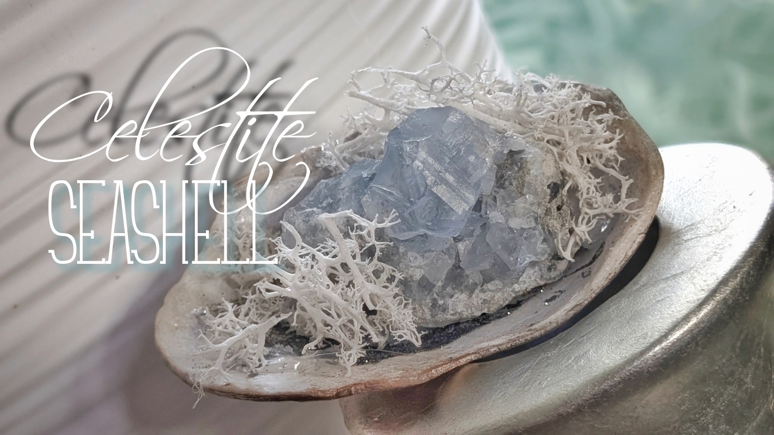 Celestite Crystal & Artificial Moss in Seashell