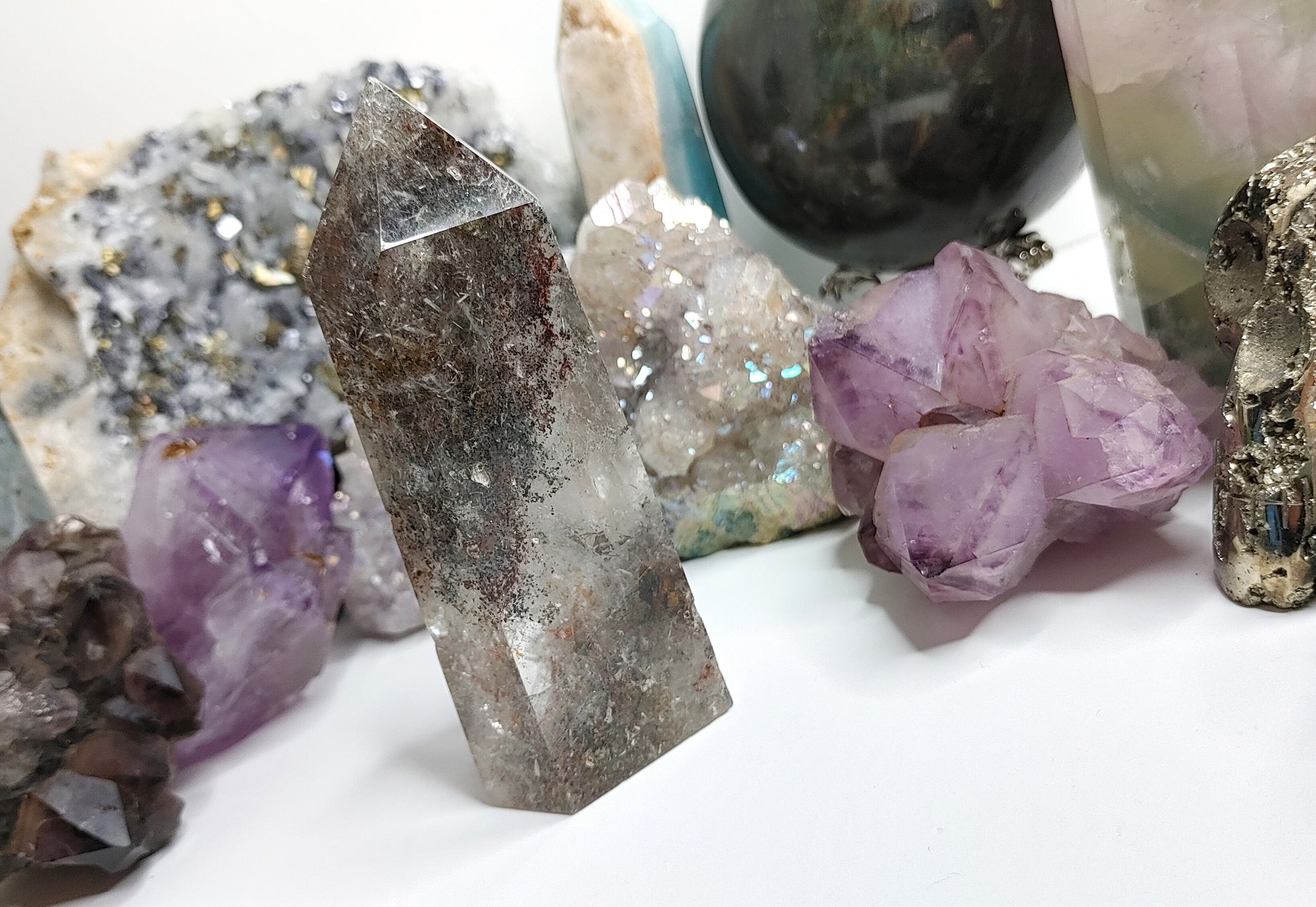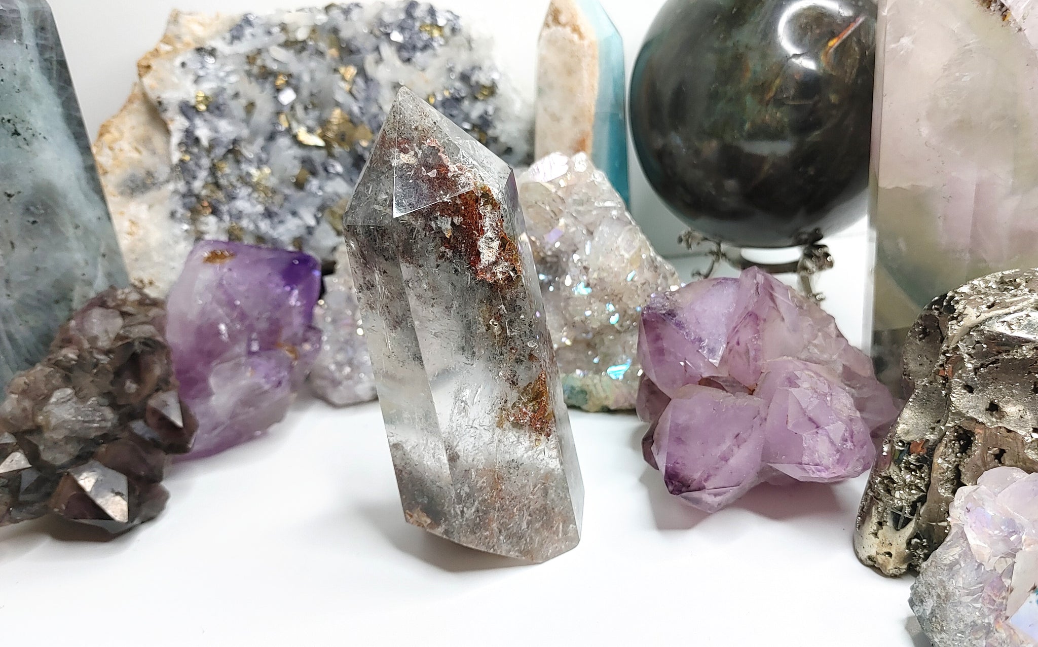 4" Lodolite Garden Quartz Crystal Pillar Tower