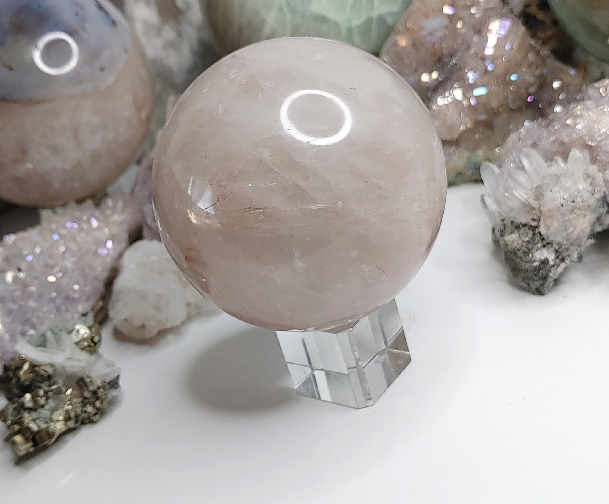 2.5" Shean Rose Strawberry Quartz Crystal Sphere with Stand