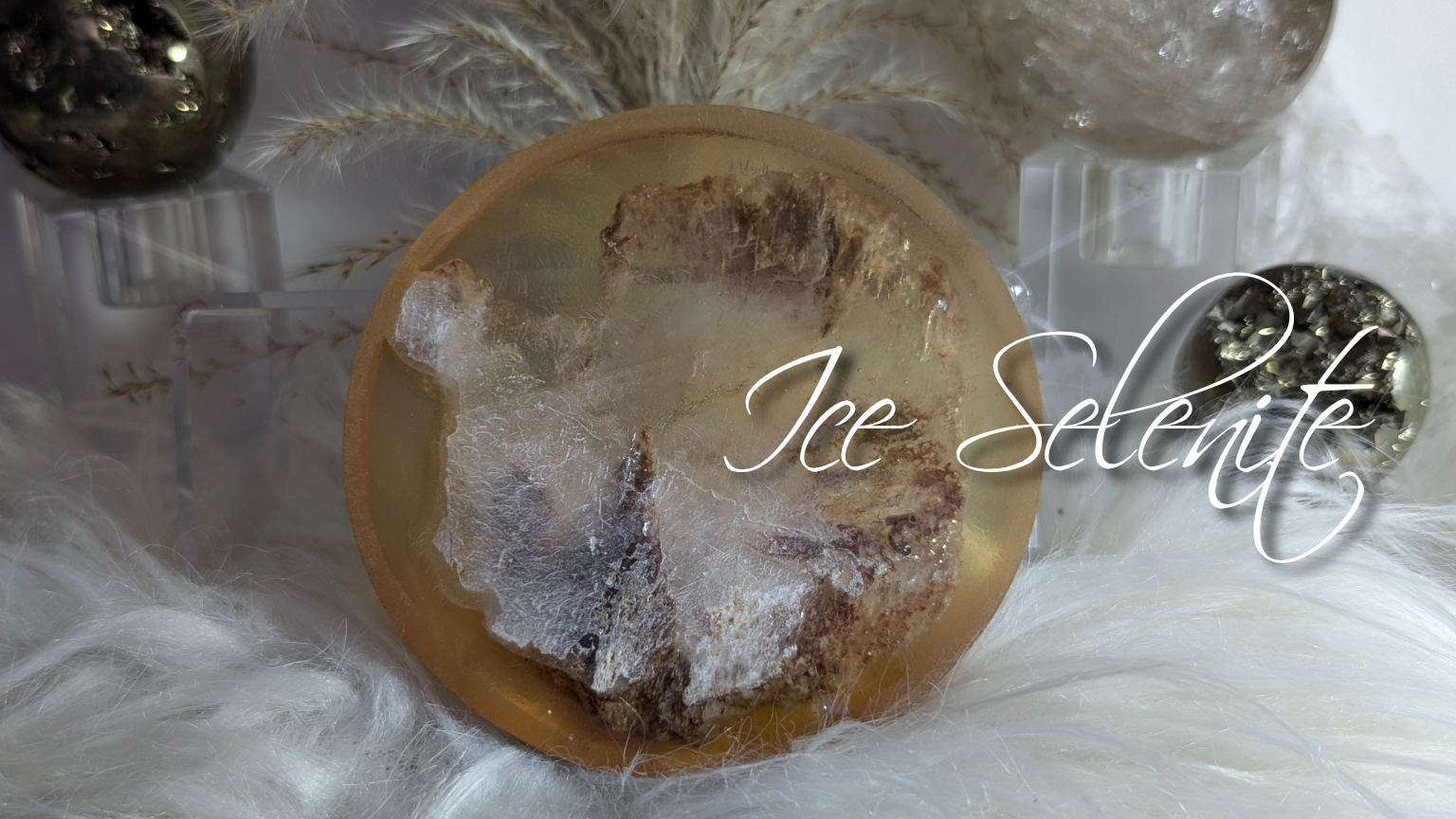 Utah Ice Selenite Crystal in Resin Coasters 2pcs