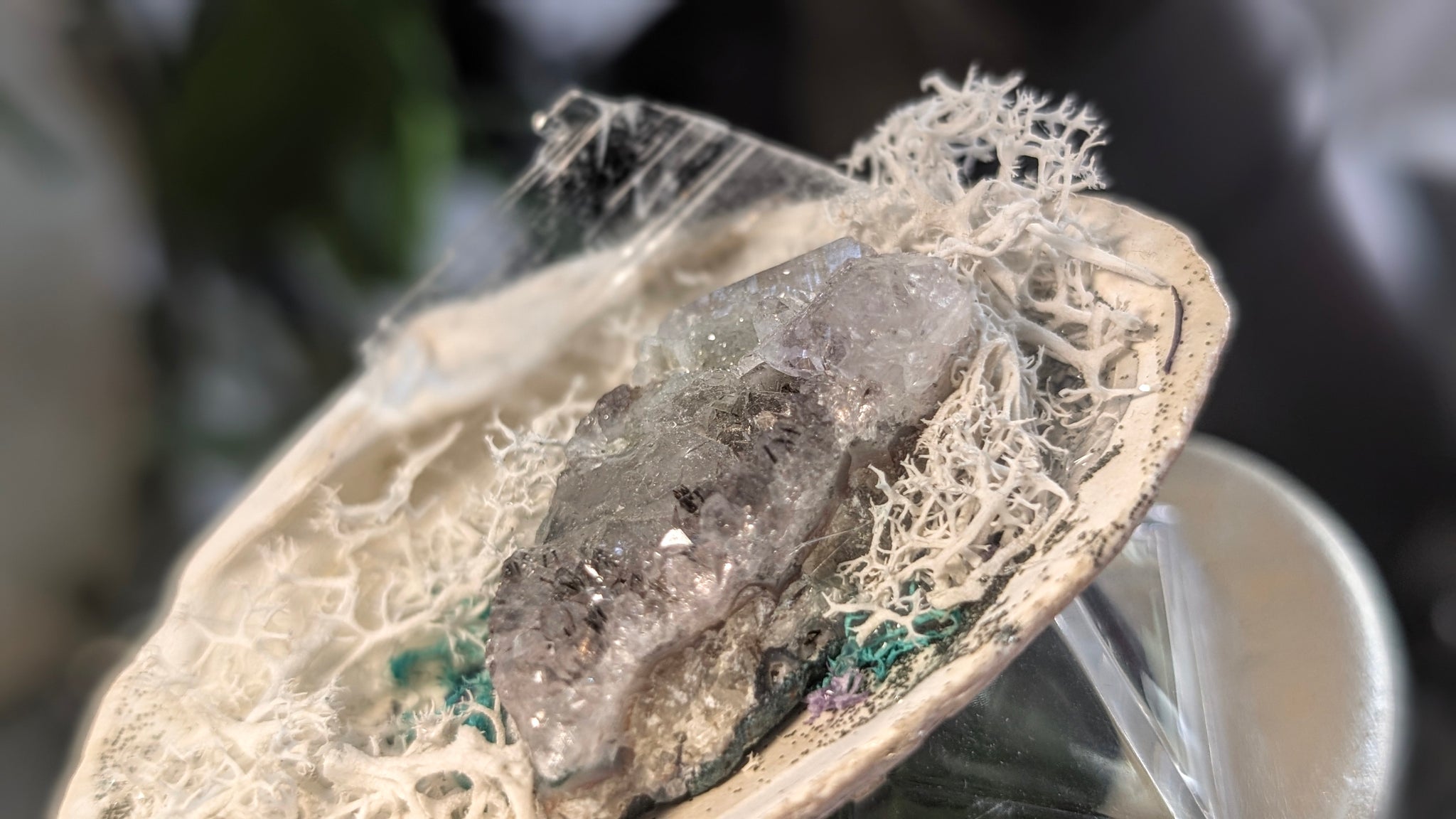 Amethyst, Selenite, Prasiolite, Crystals in Seashells 2pcs