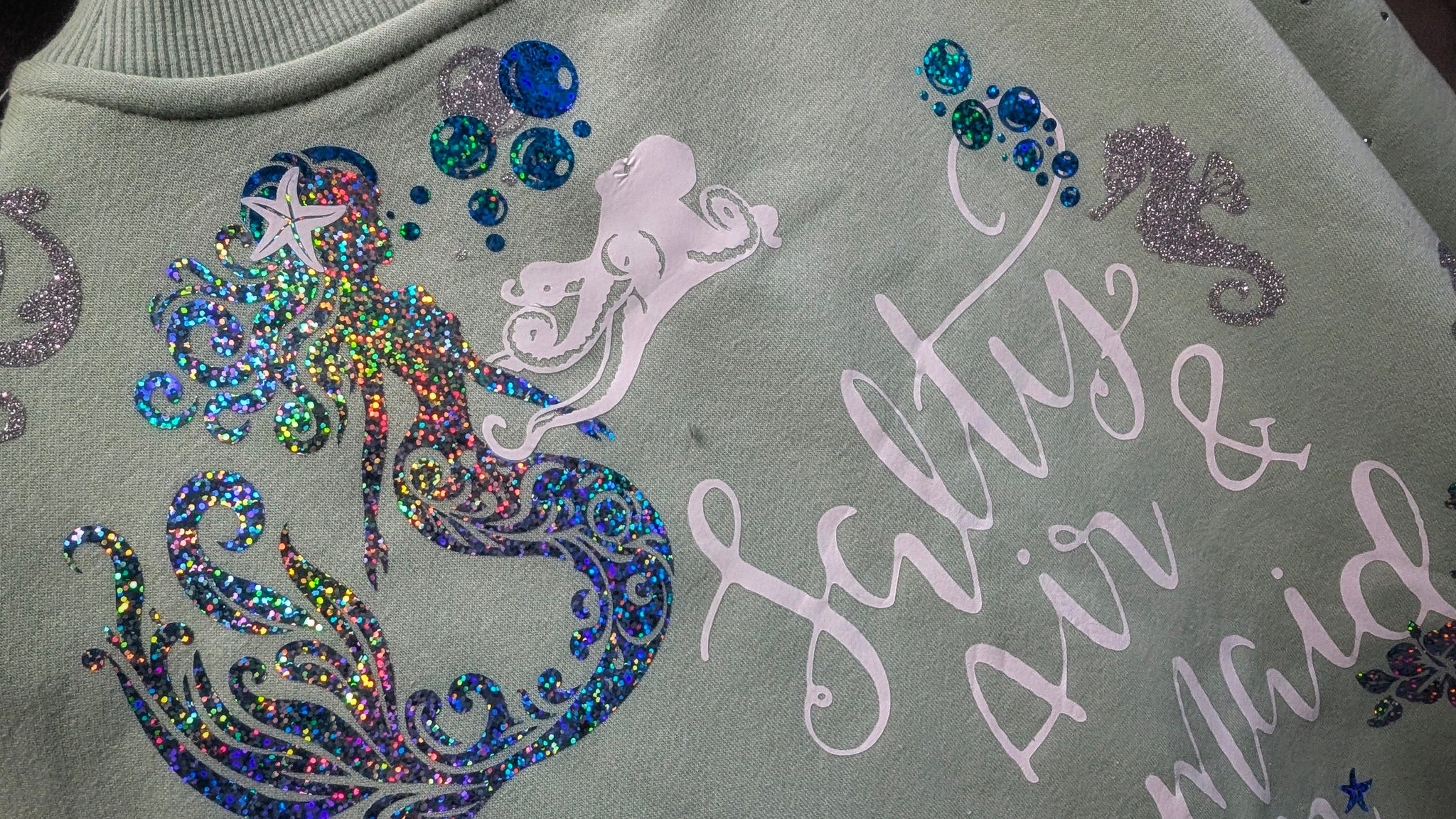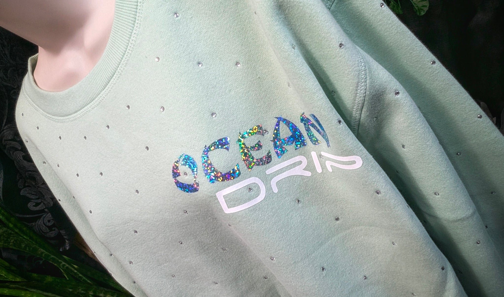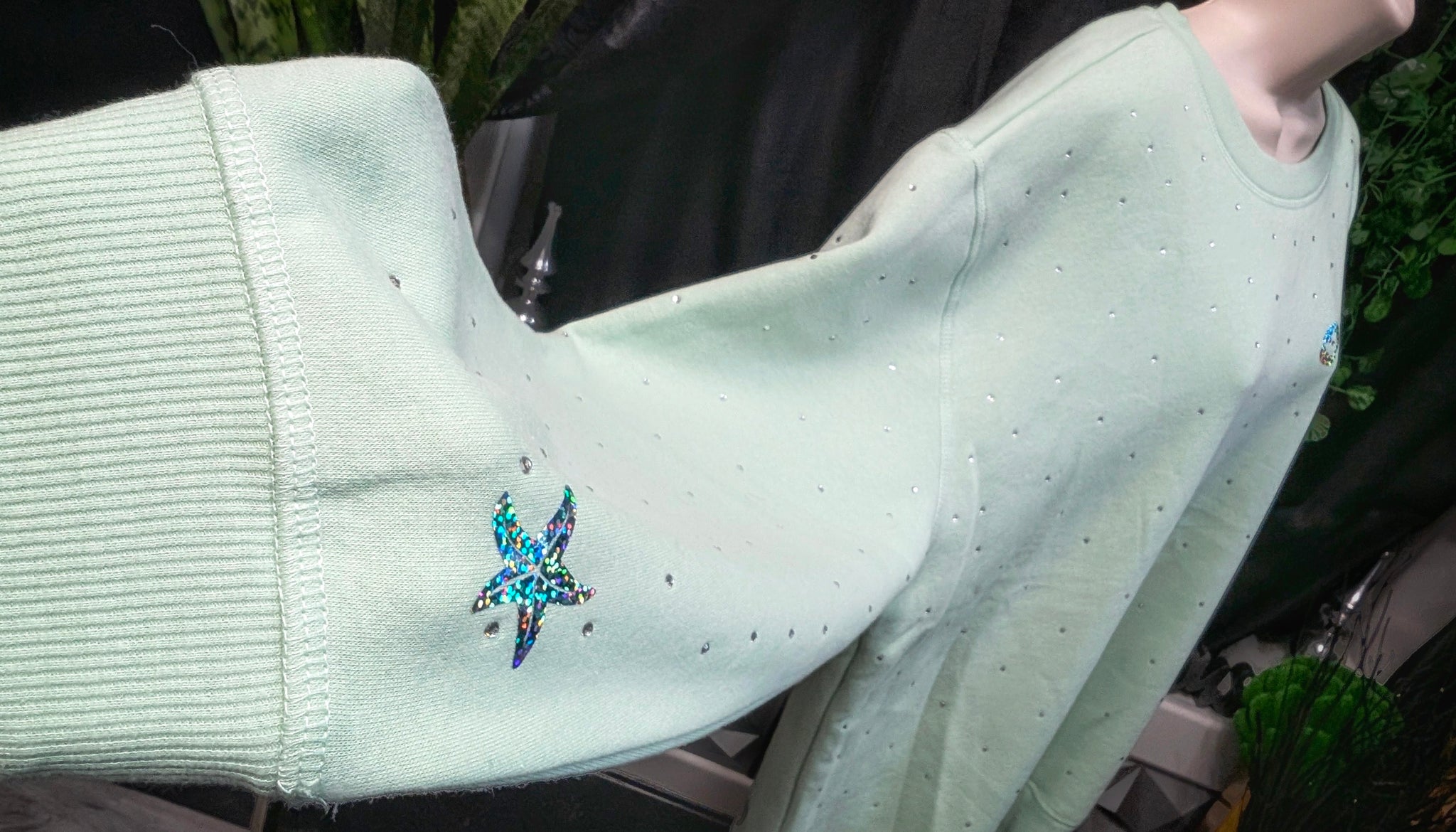 Ocean Drip Mint Rhinestone Accented "Mermaid Hair" Sweater NEW 1X