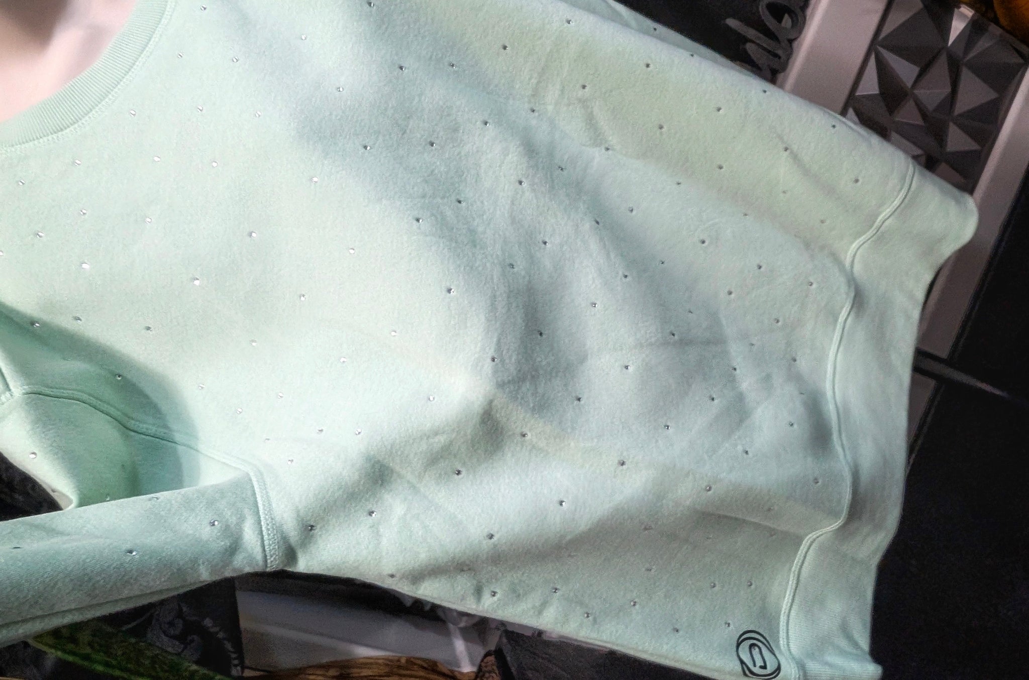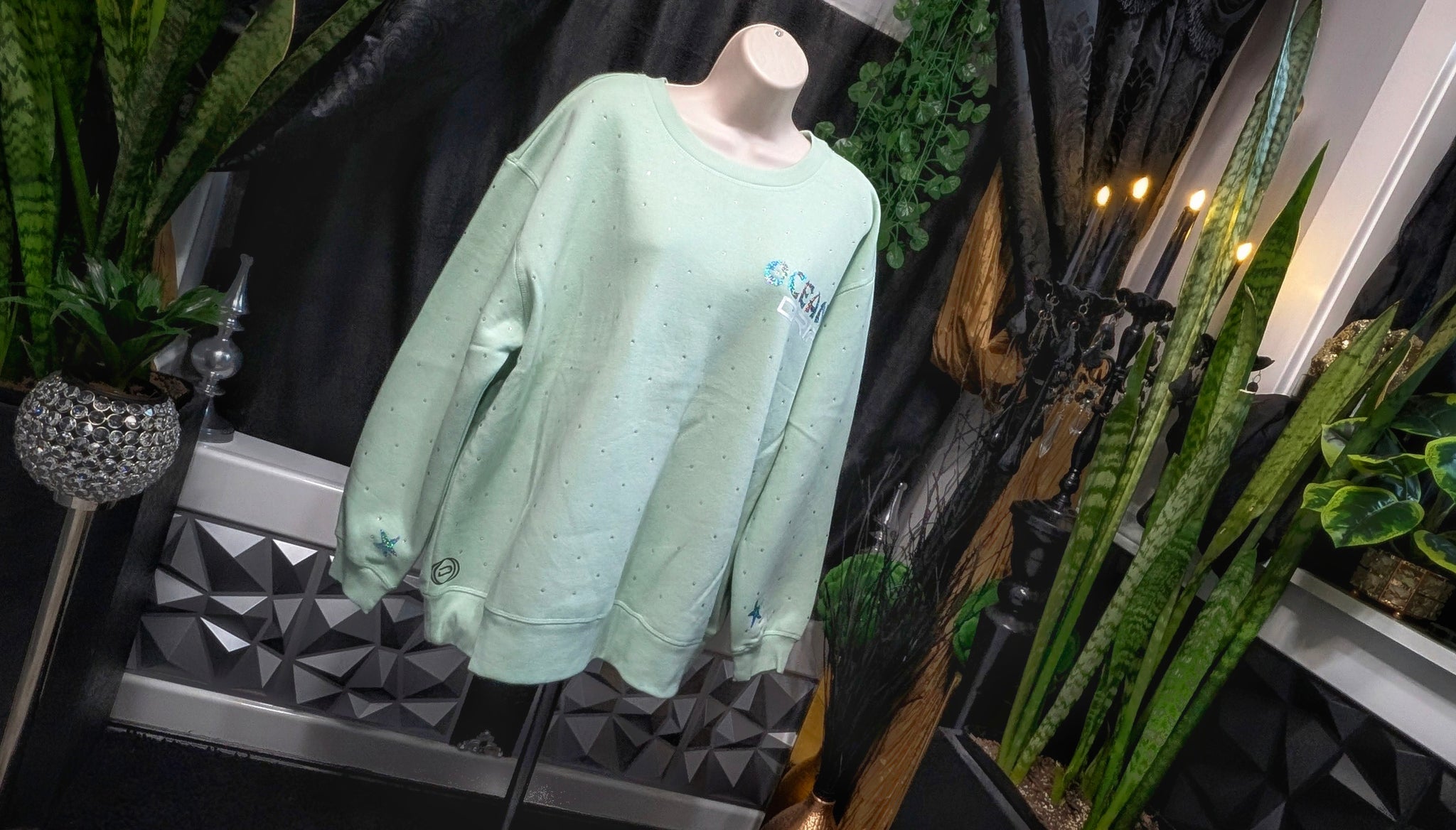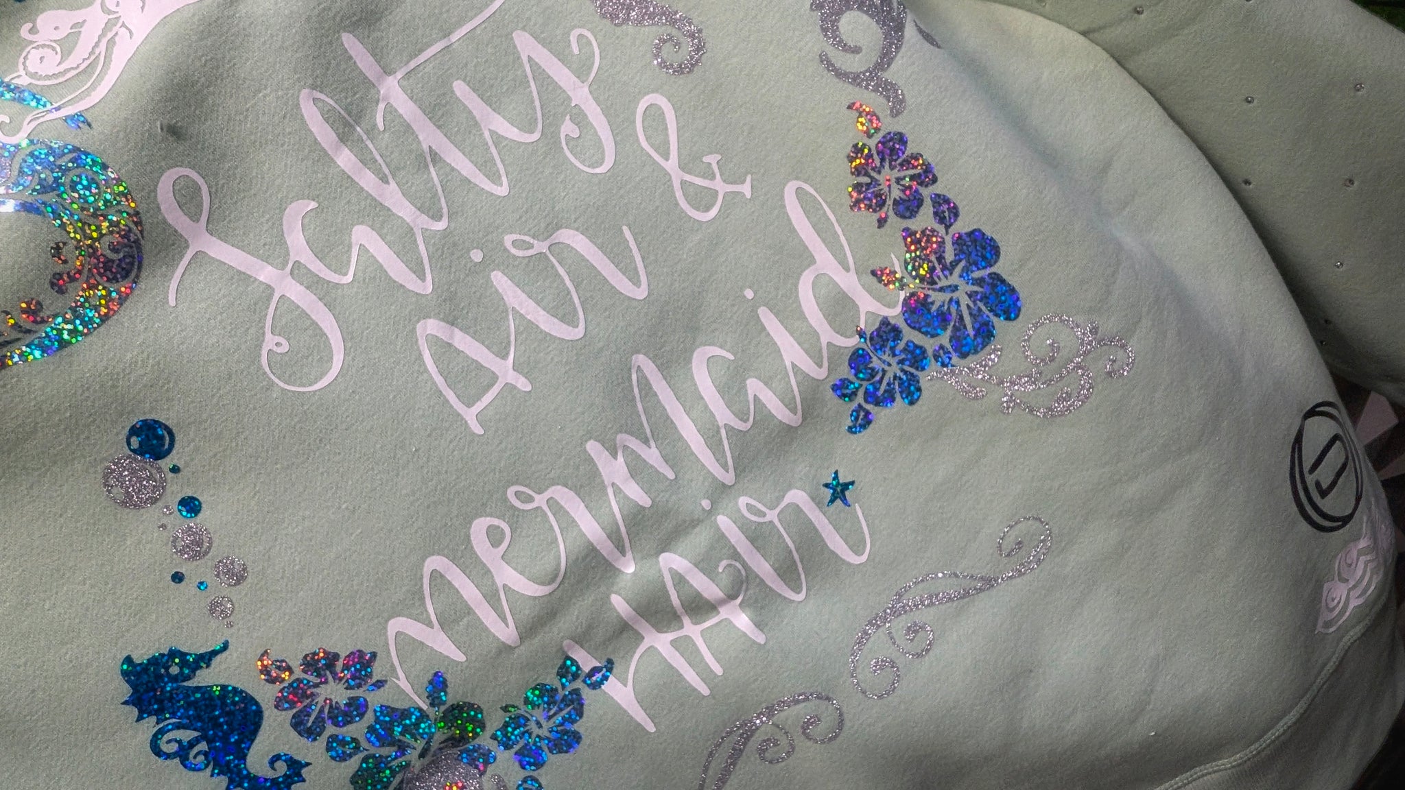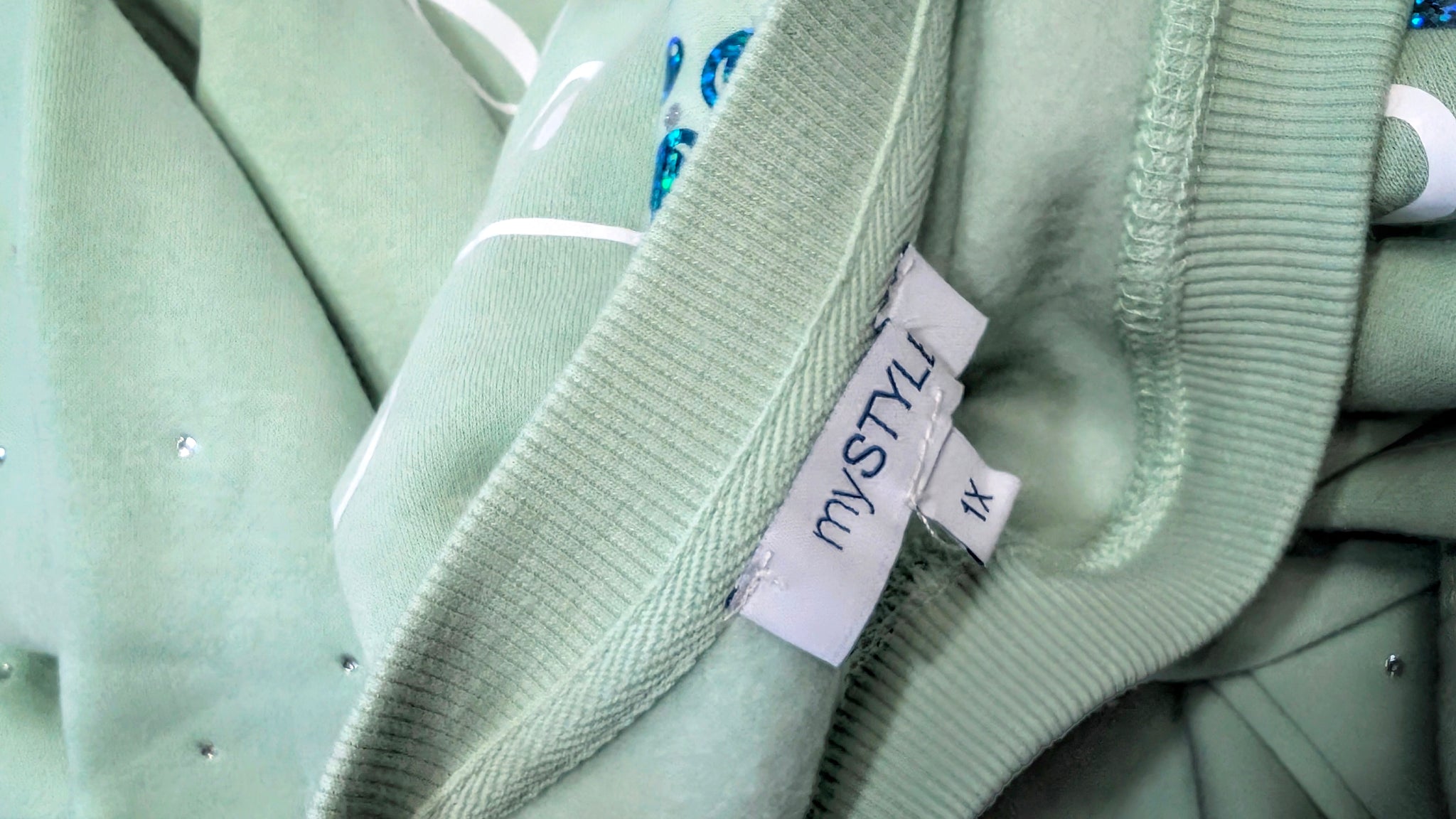 Ocean Drip Mint Rhinestone Accented "Mermaid Hair" Sweater NEW 1X