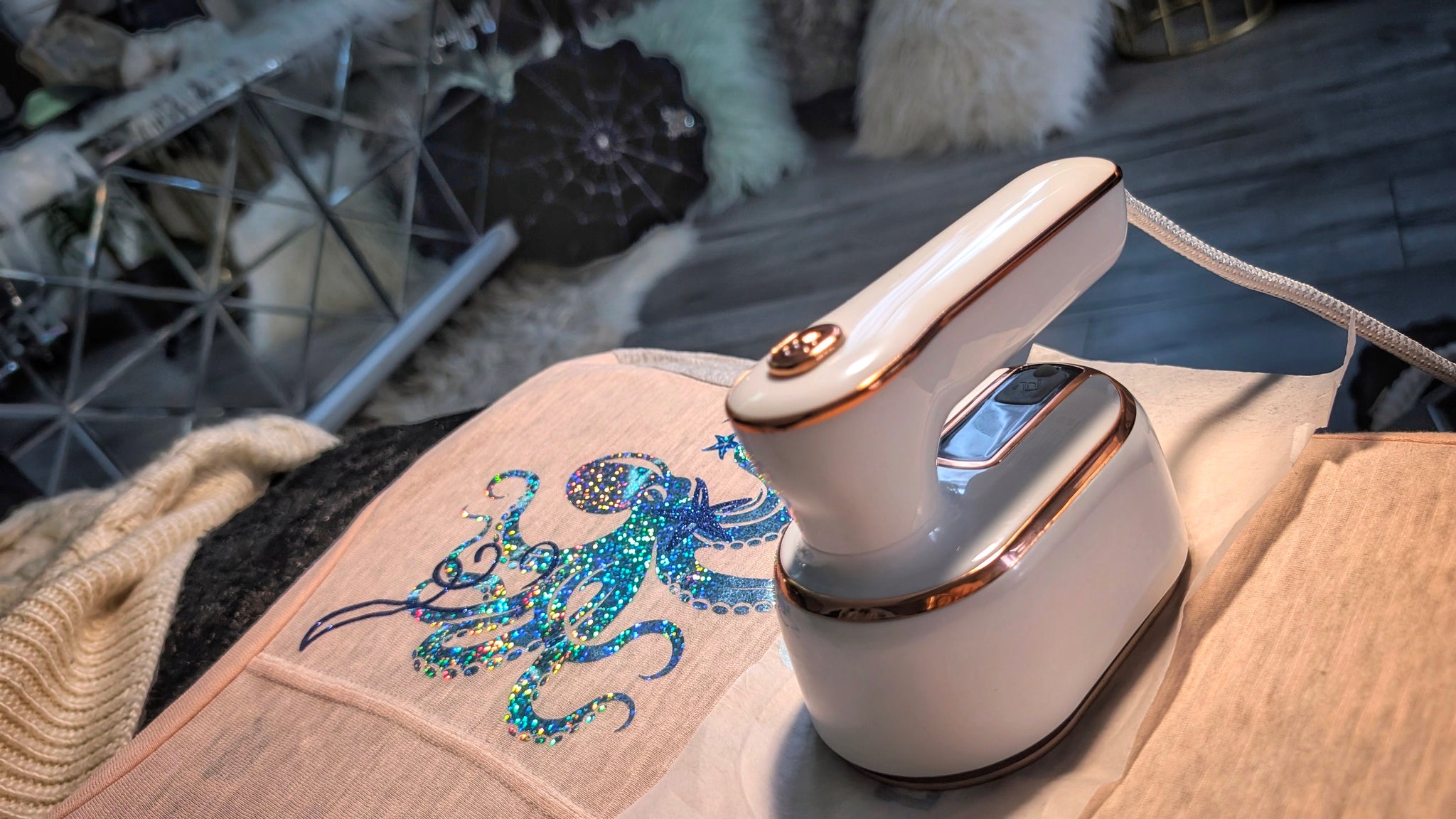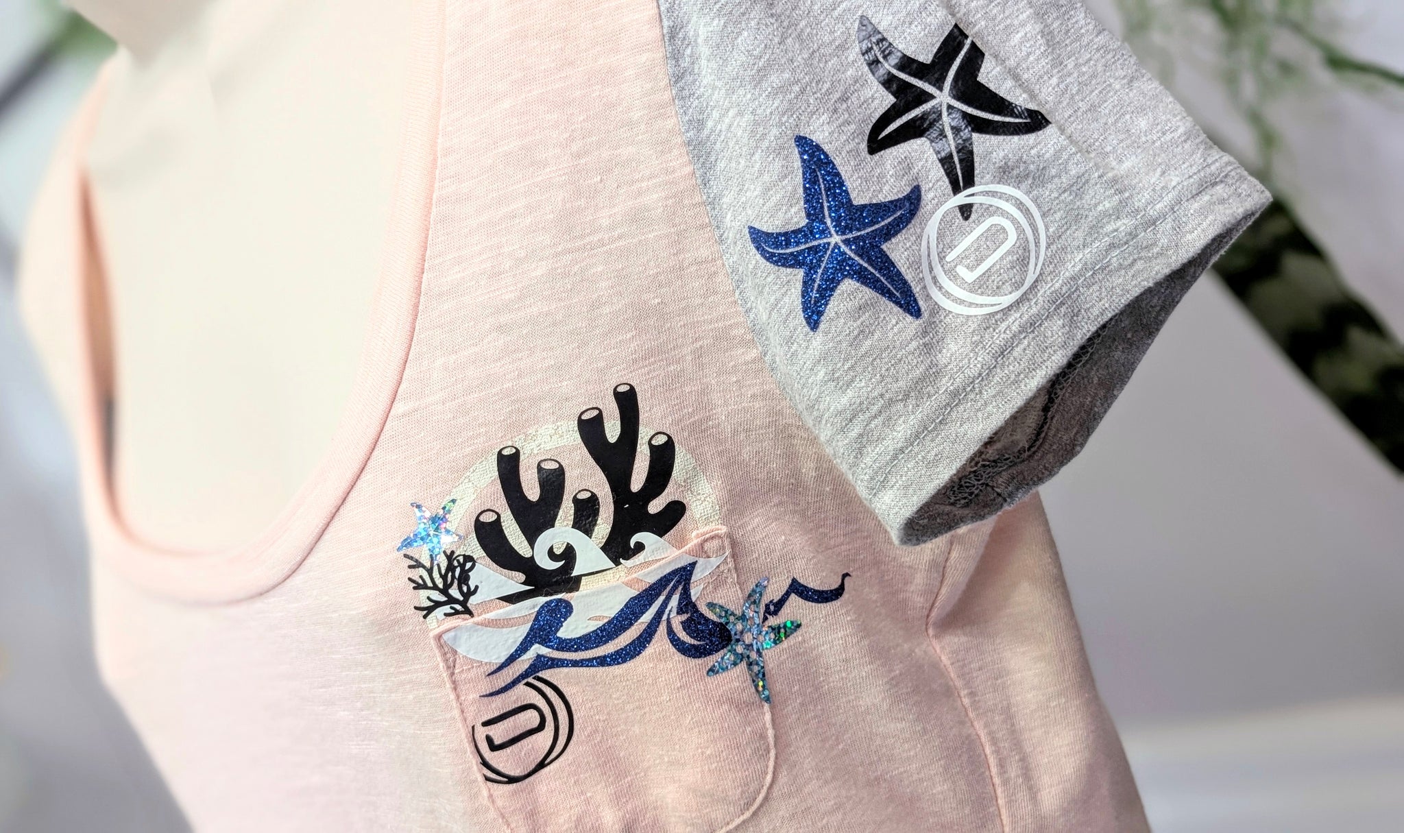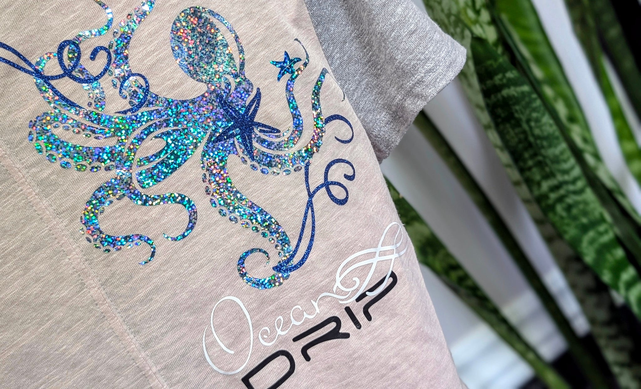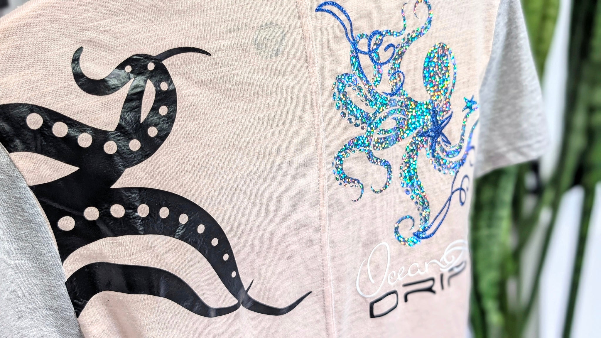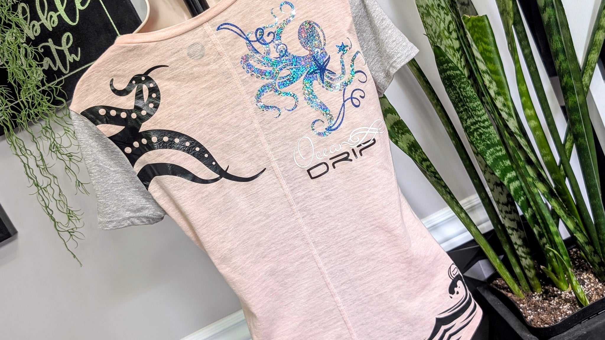 Ocean Drip Octopus Glitter Tee Shirt Top SM