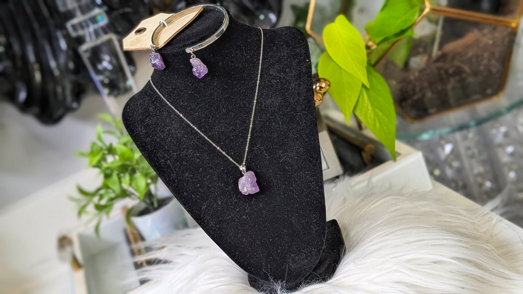 Amethyst Crystal Necklace & Bracelet Set