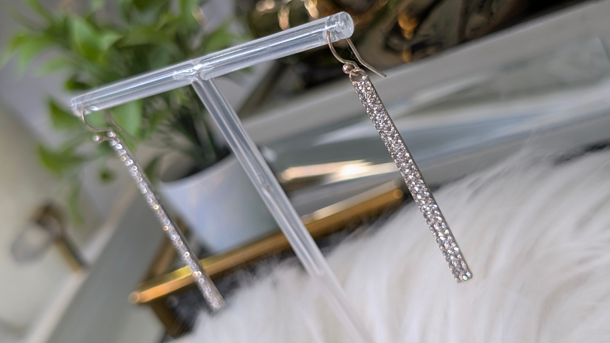 Cubic Zirconia Rectangular Drop Earrings (Stand Not Included)