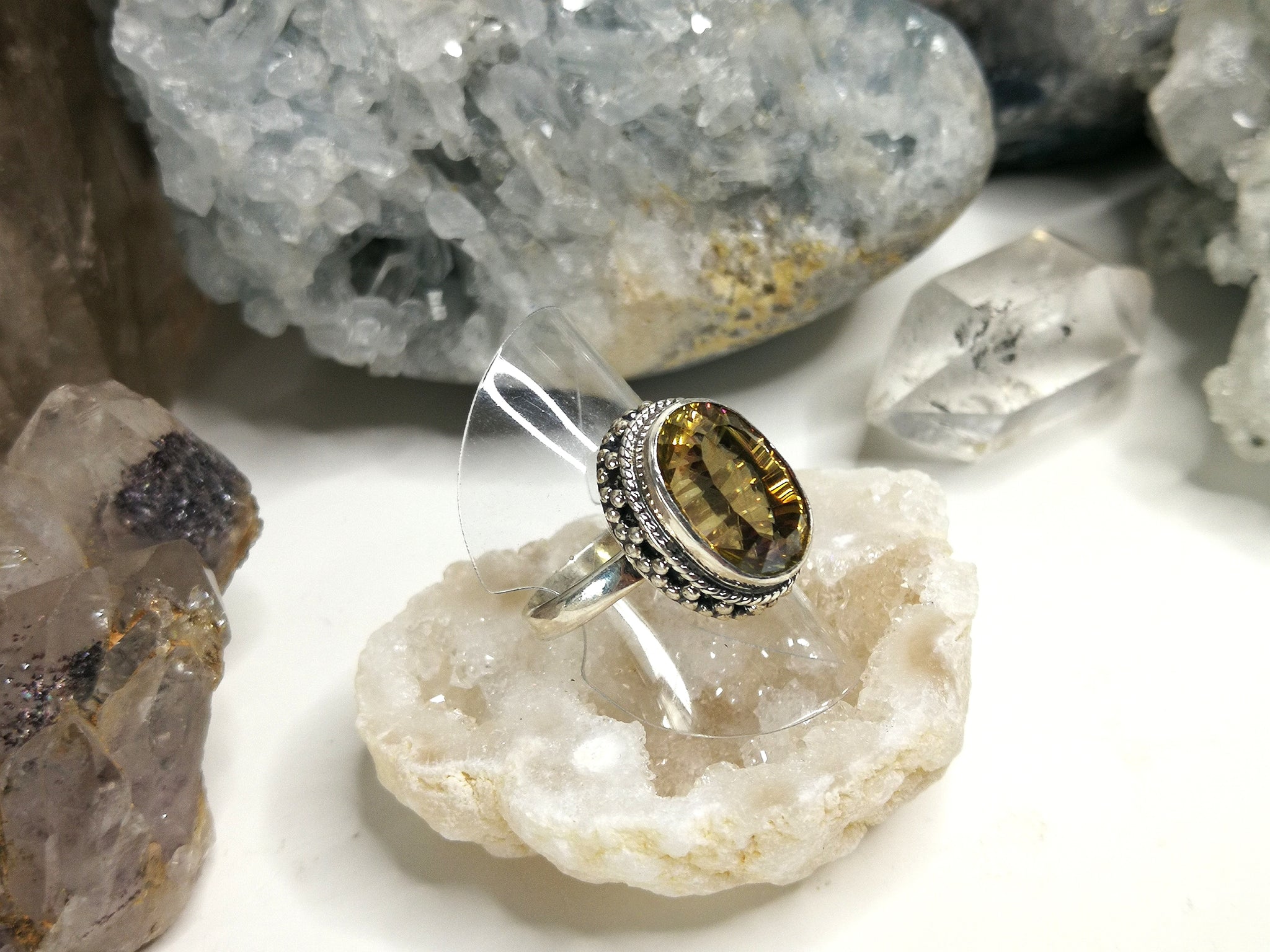 Faceted Mystic Topaz Sterling Silver Ring w/Stand sz6