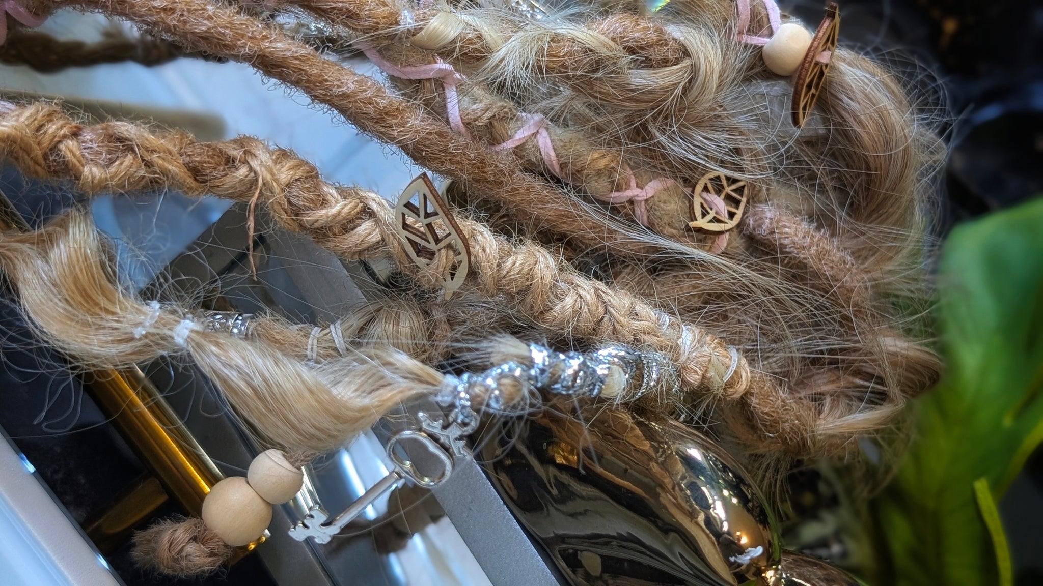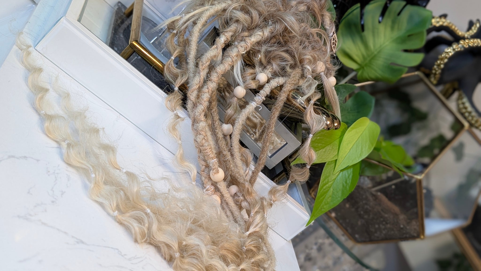Natural Tan & Pink Dread Lock Hair Bun (wig not included)