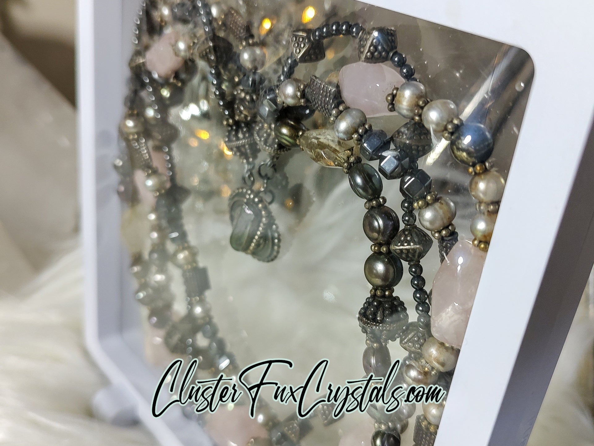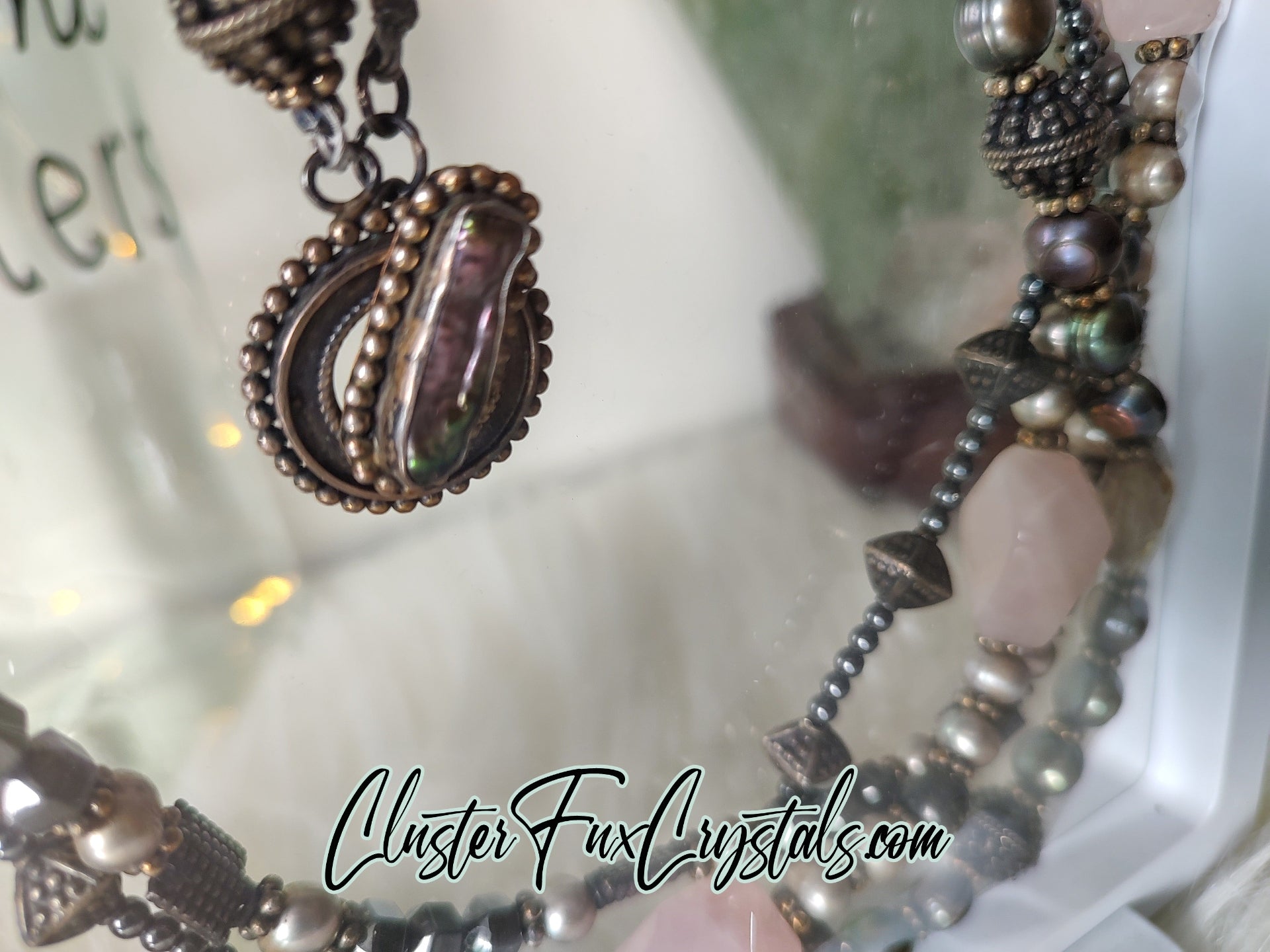 RoseQuartz. RutilatedQuartz. Abalone. Hematite. BaroquePearls. Display Case Included. Smoke Free/Pet Free.