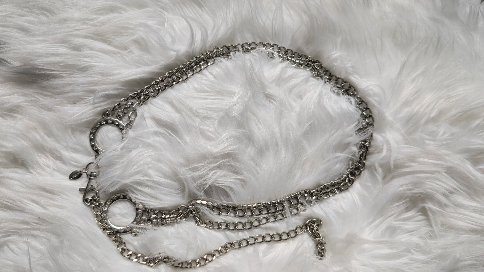 Rhinestone Accents Adjustable Chrome Metal Belt NEW