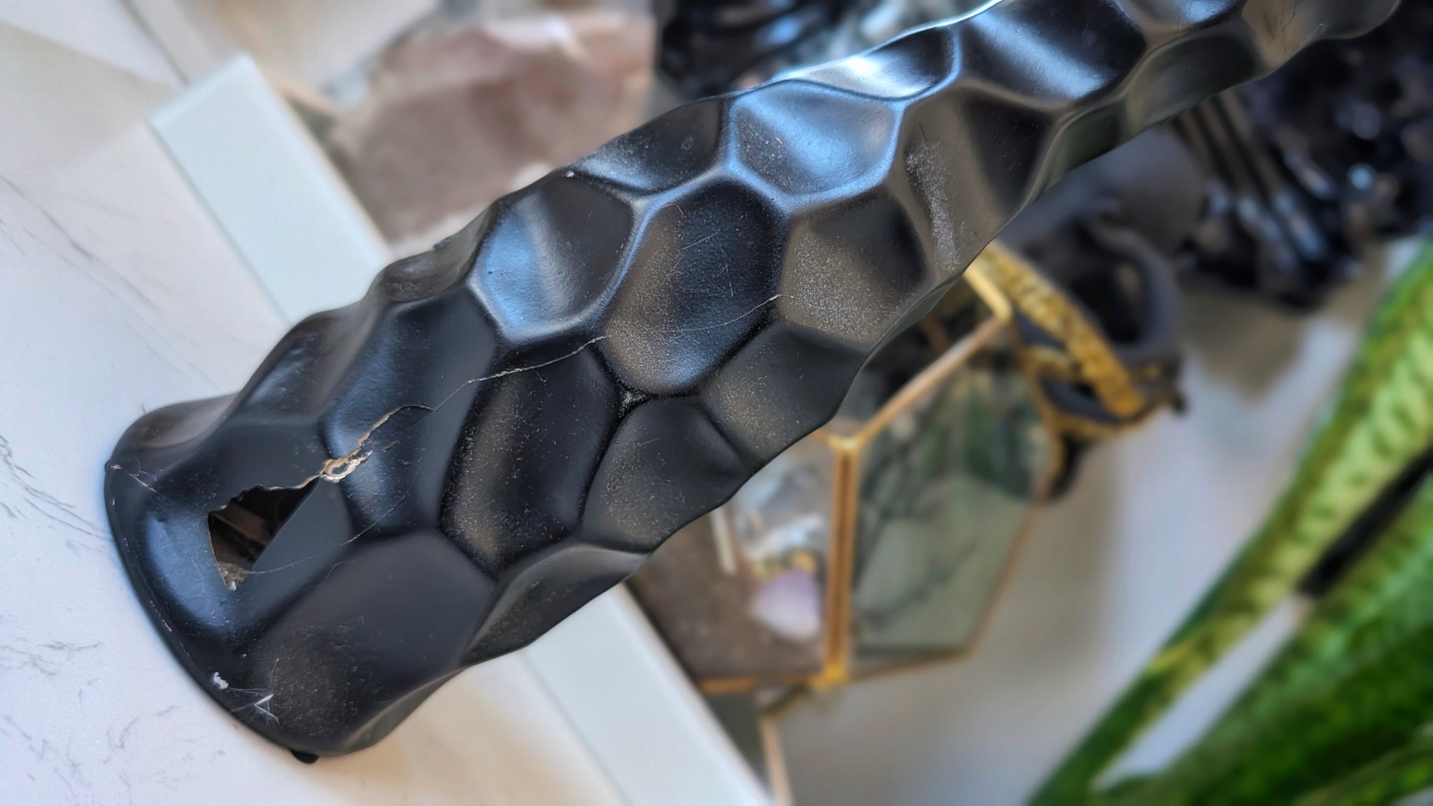 26" Black Pampas Grass Arrangement in Vase (cracked)