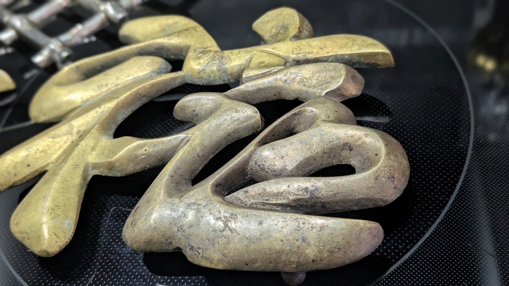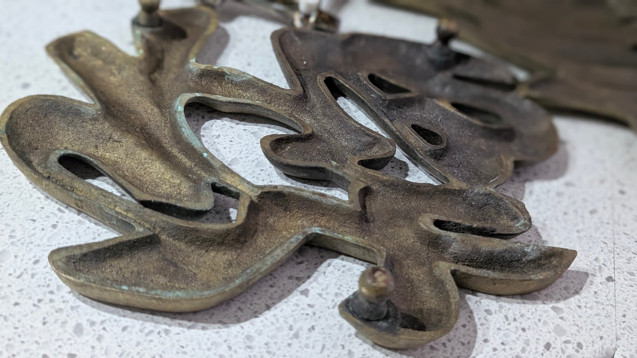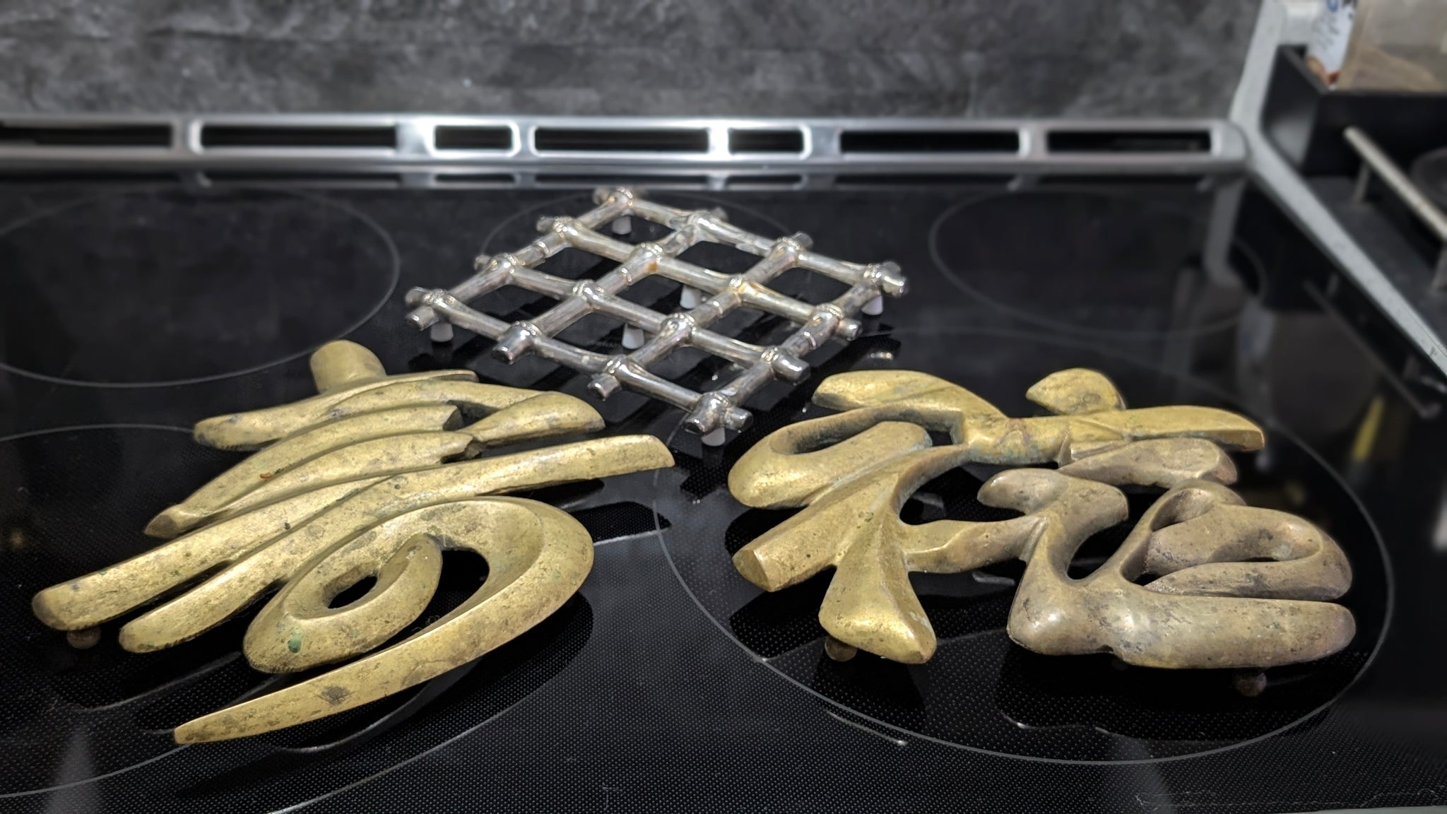 Asian Kanji Solid Brass & Silver Plated Pot or Planter Holders 3pcs