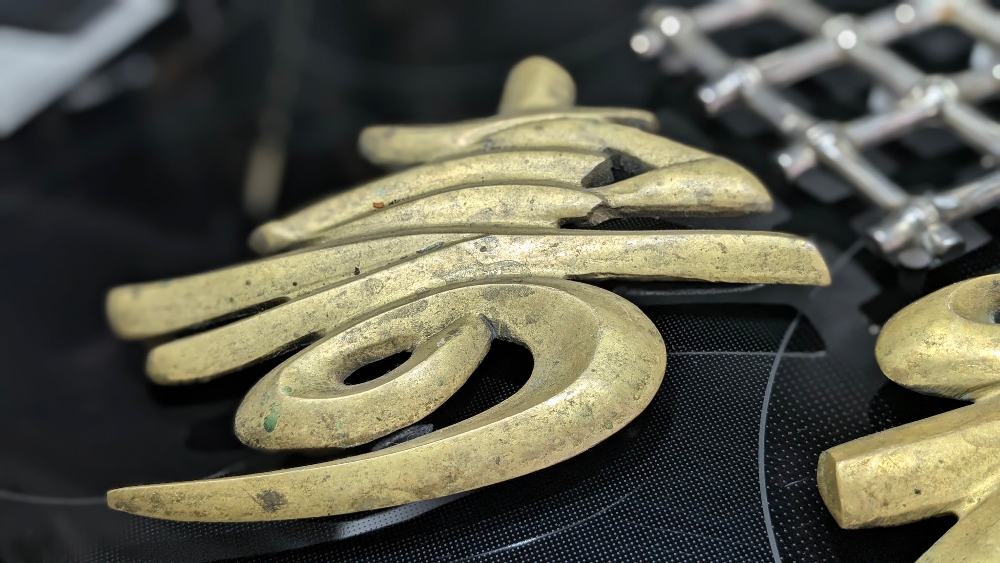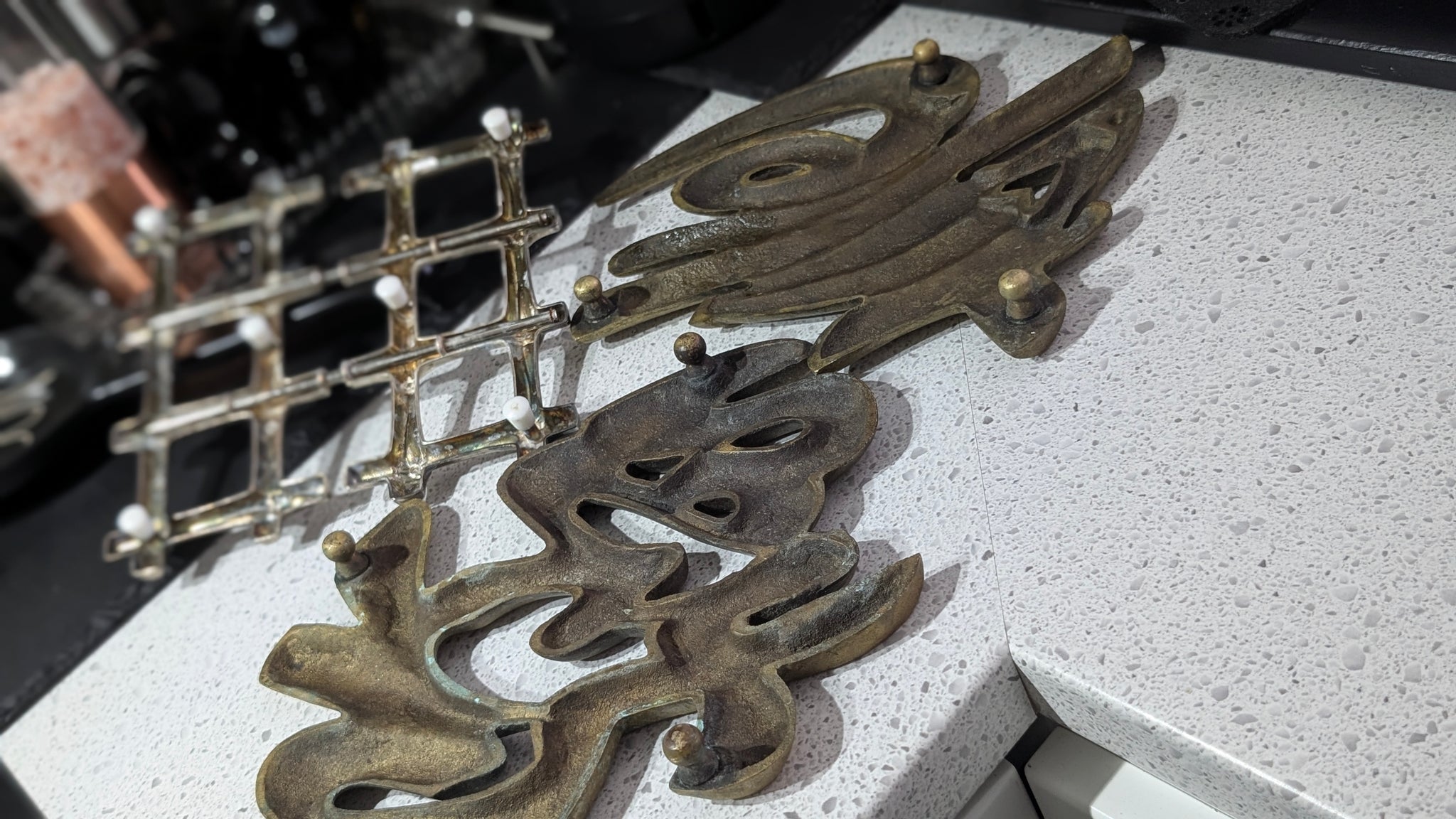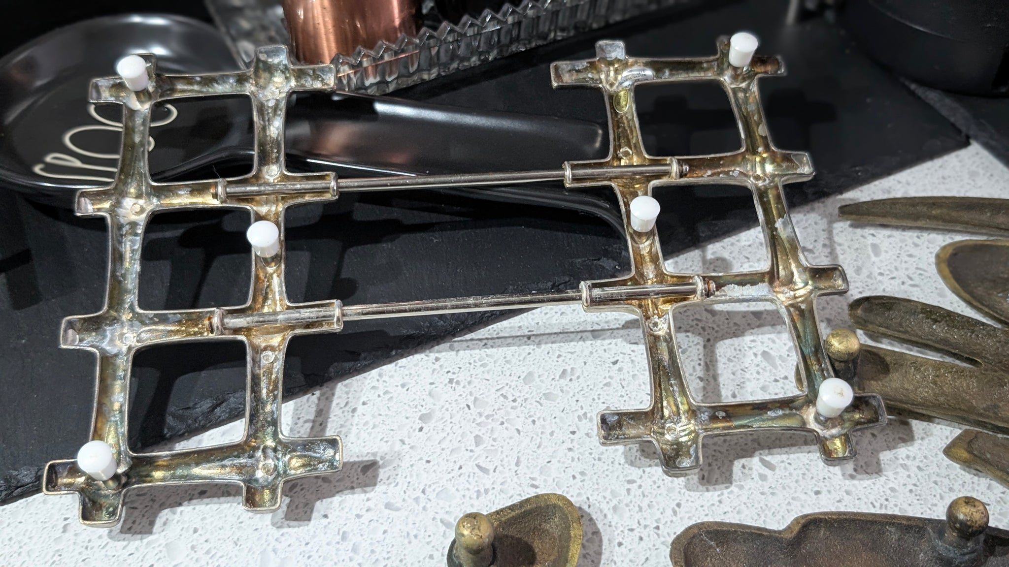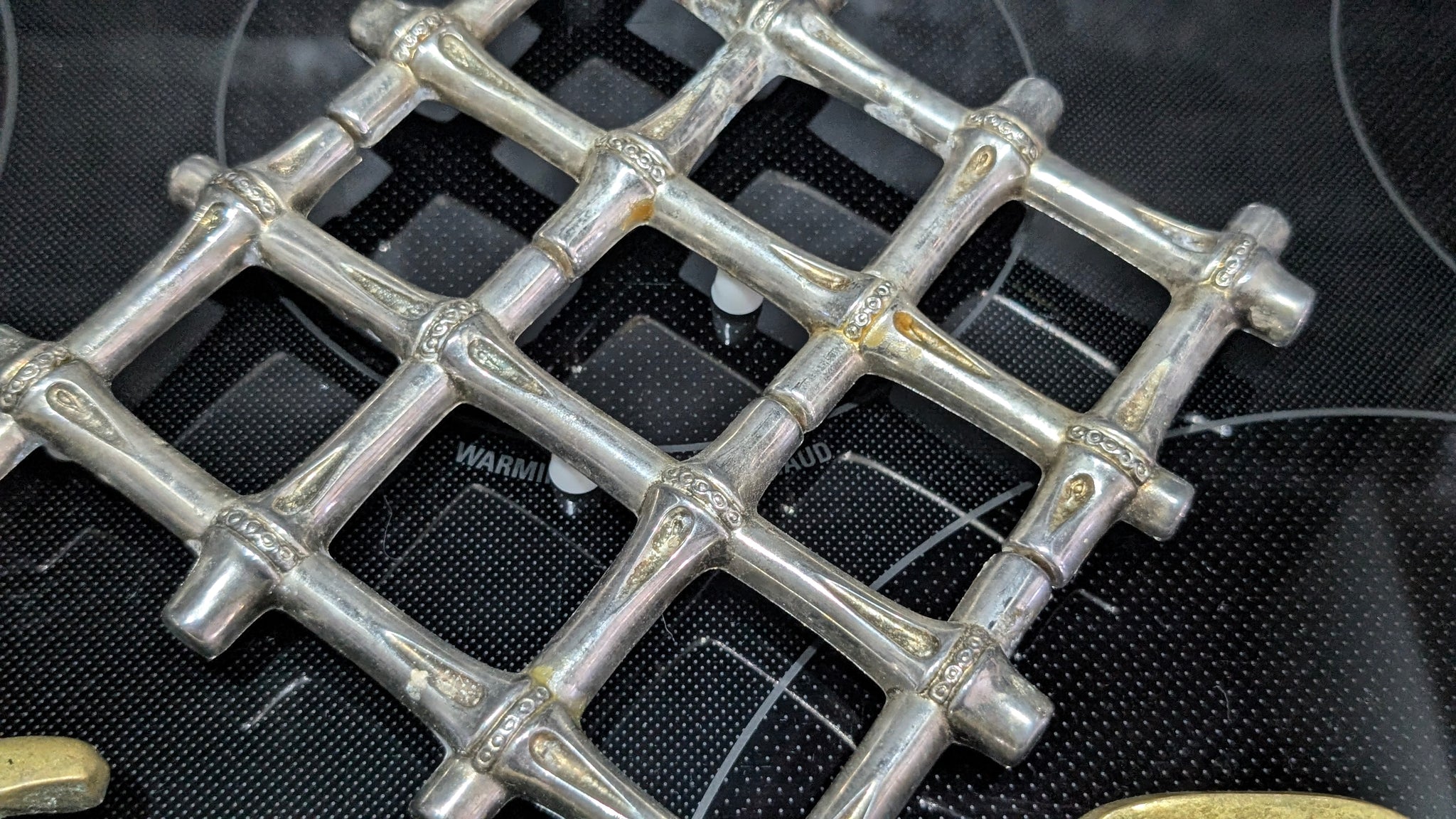 Asian Kanji Solid Brass & Silver Plated Pot or Planter Holders 3pcs