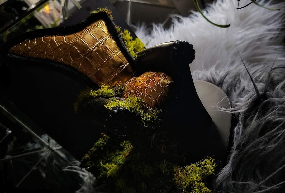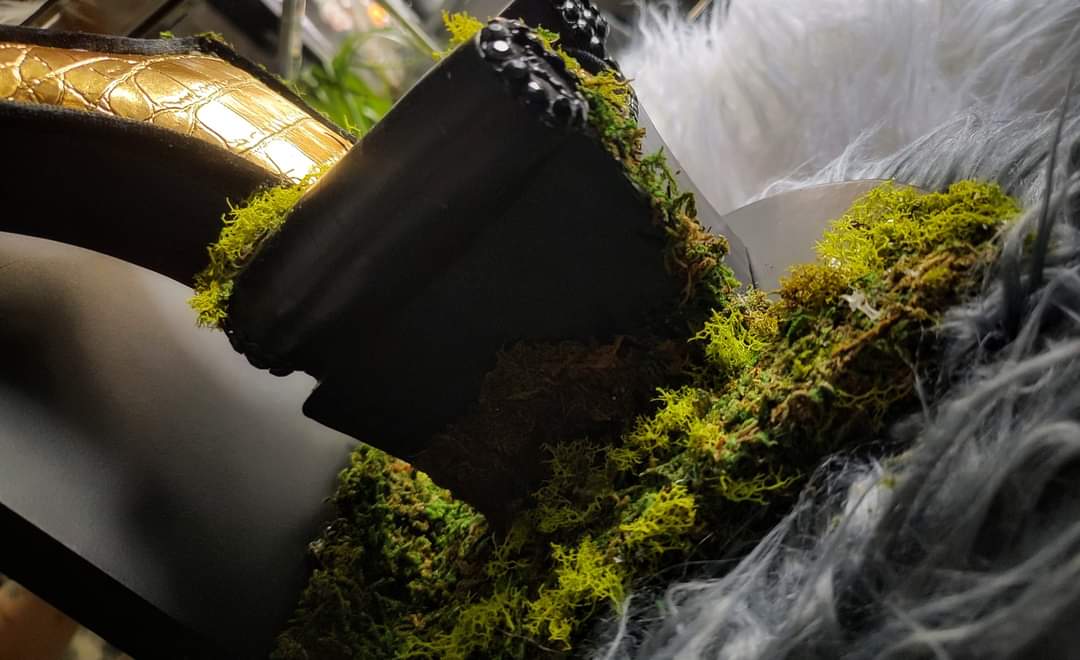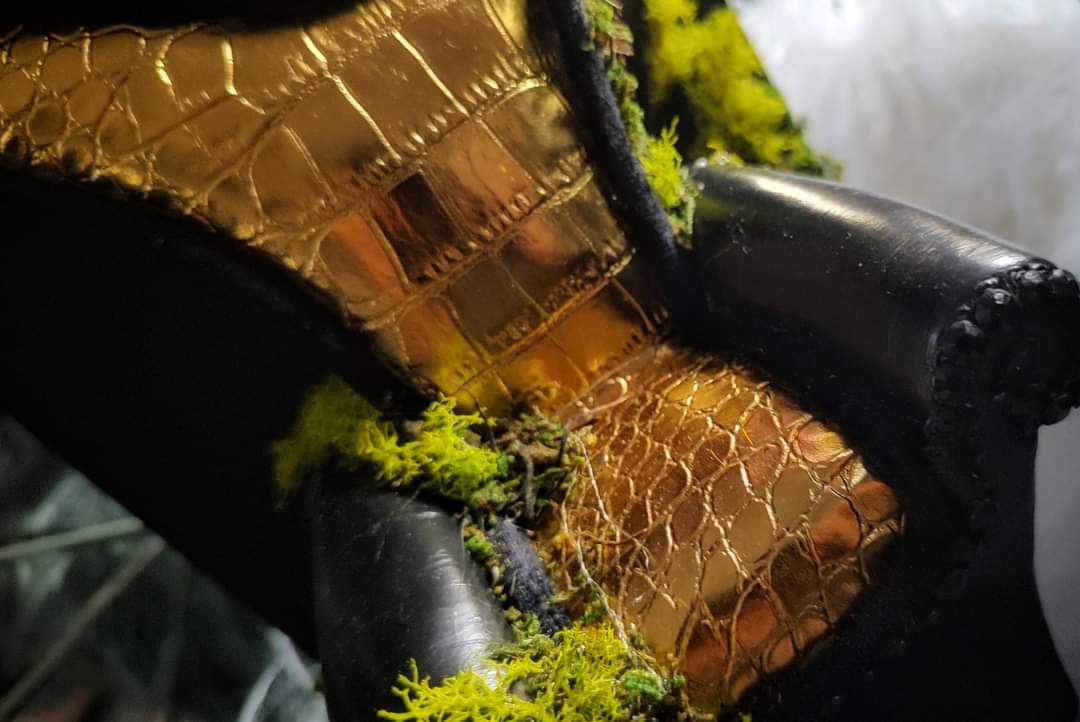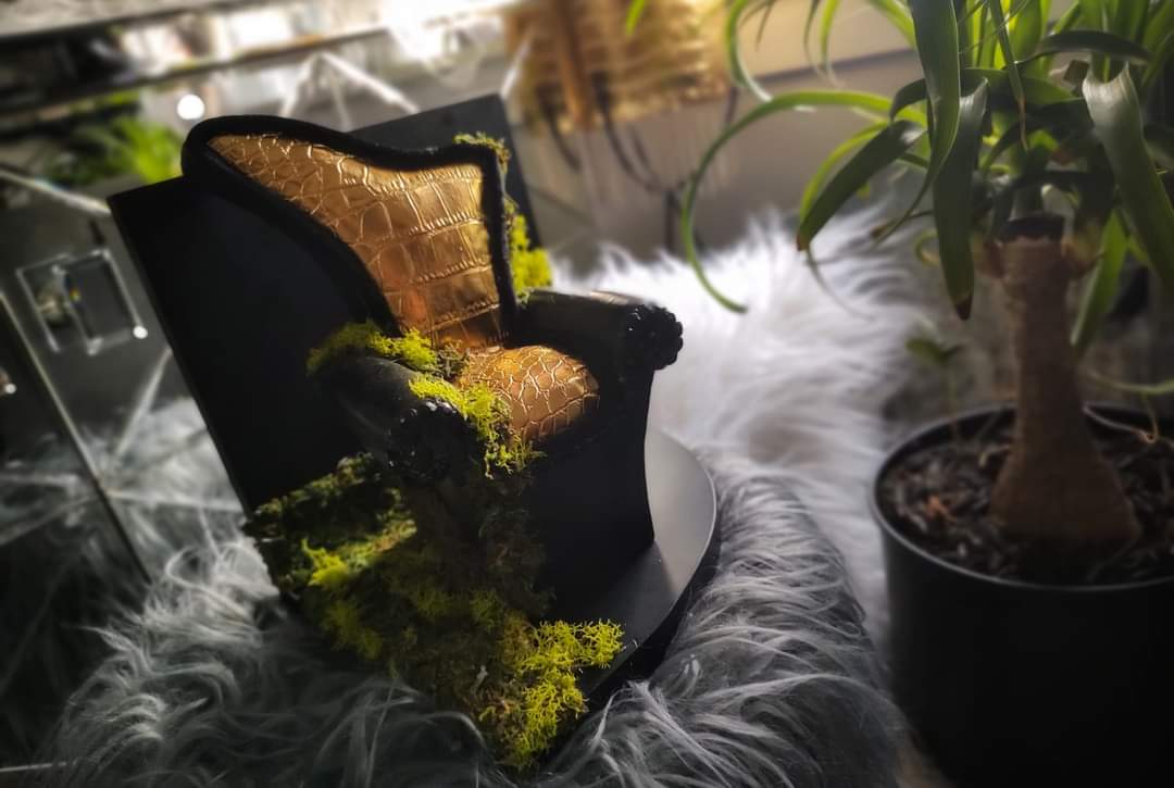 Black & Gold Moss Chair on Wall Display Shelf
