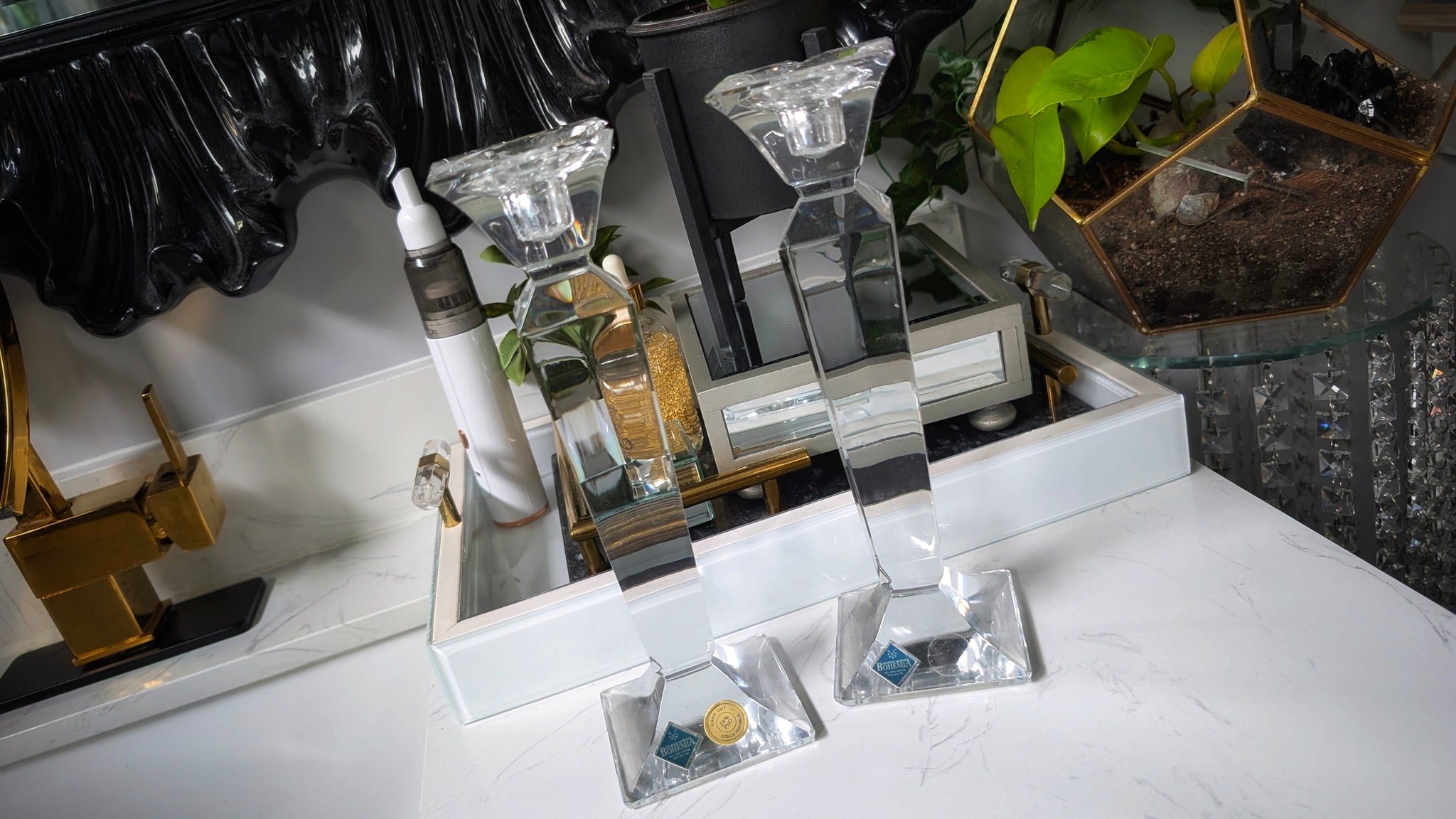 Bohemia Lead Crystal Candle Holders 10" (chipped)