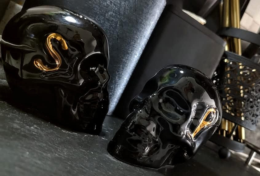 Gloss Black w/Gold Skull Salt & Pepper Shakers