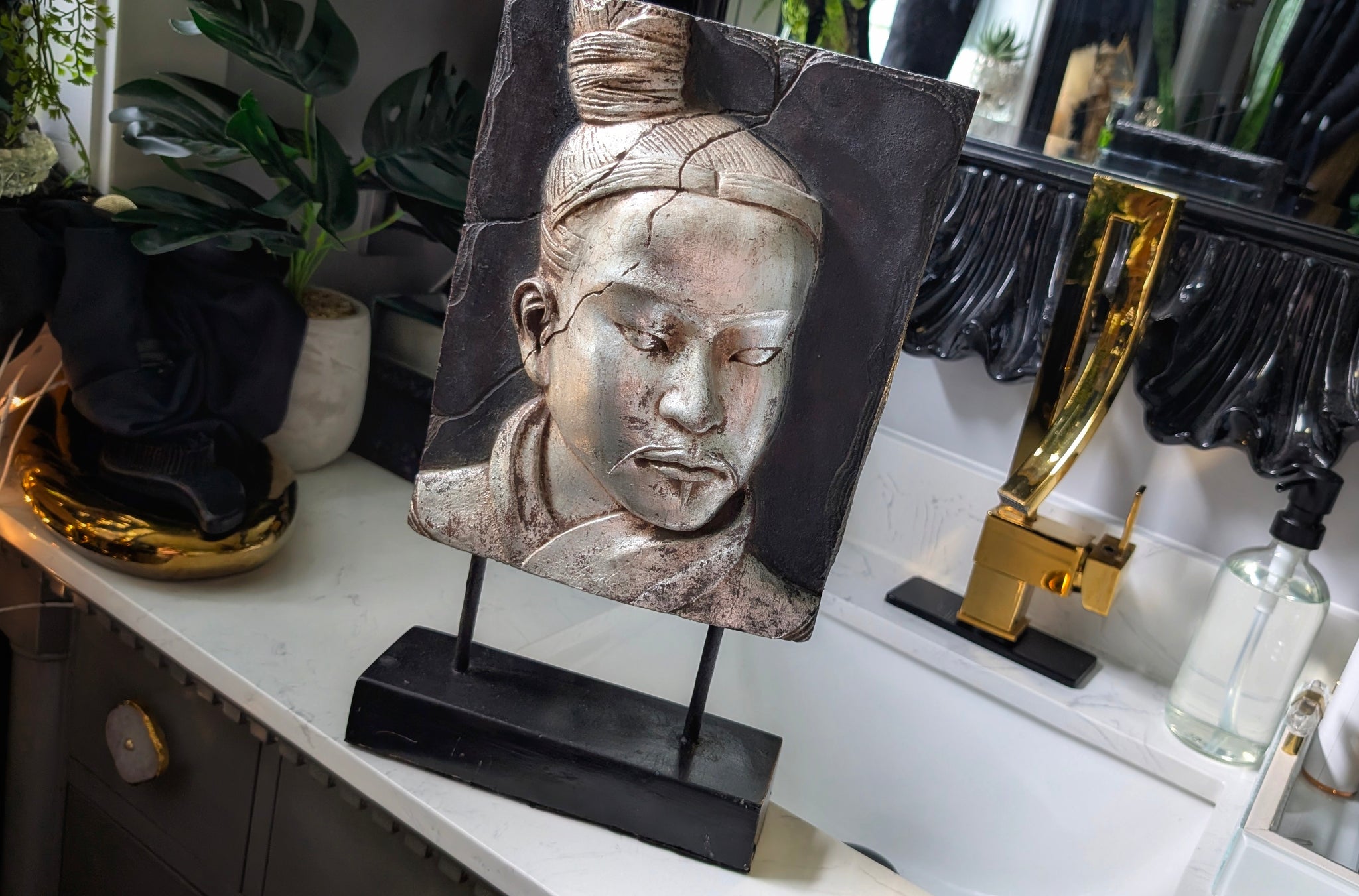 Japanese Terracotta Warrior Decorative Plaque on Stand