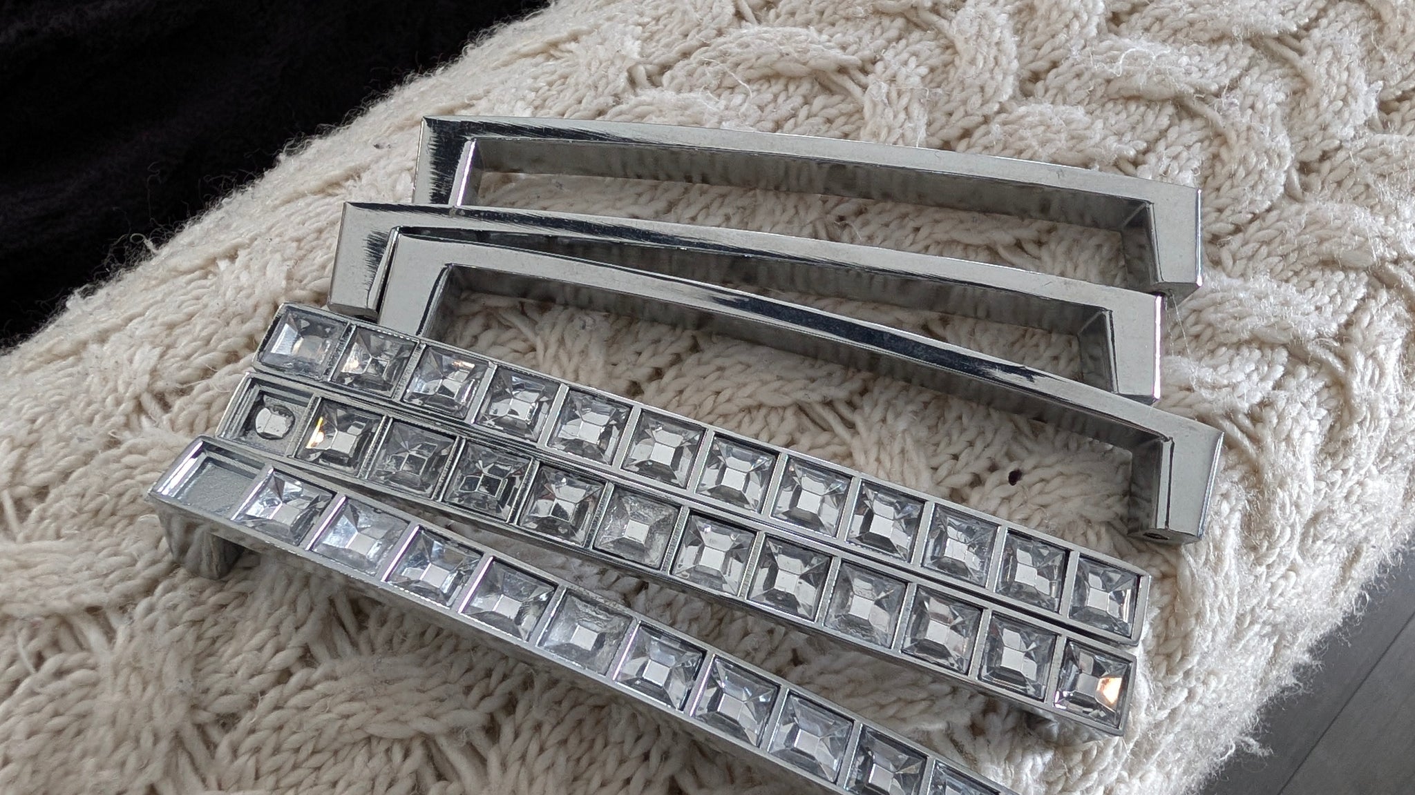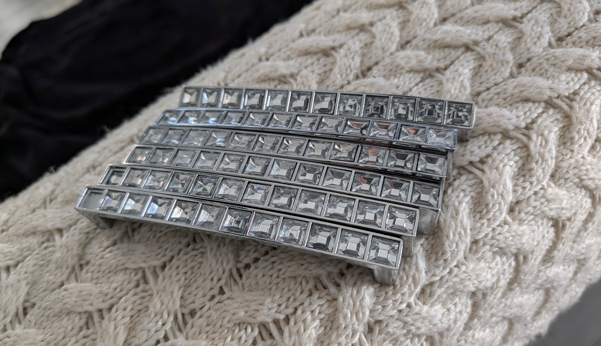 Rhinestone Crystal Bling Handles x5 (missing 2 gems) 5 & 1/4" Hole Spacing