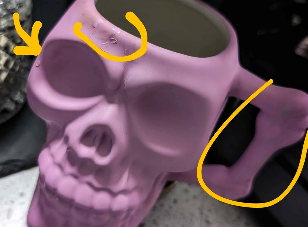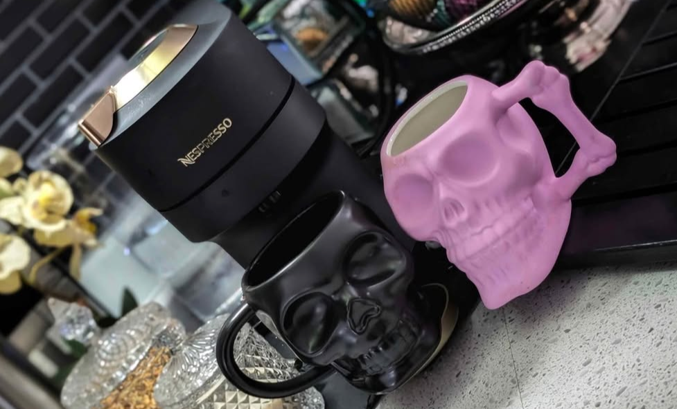 Skull Coffee Mugs (pink outer shell is damaged from Microwaving)