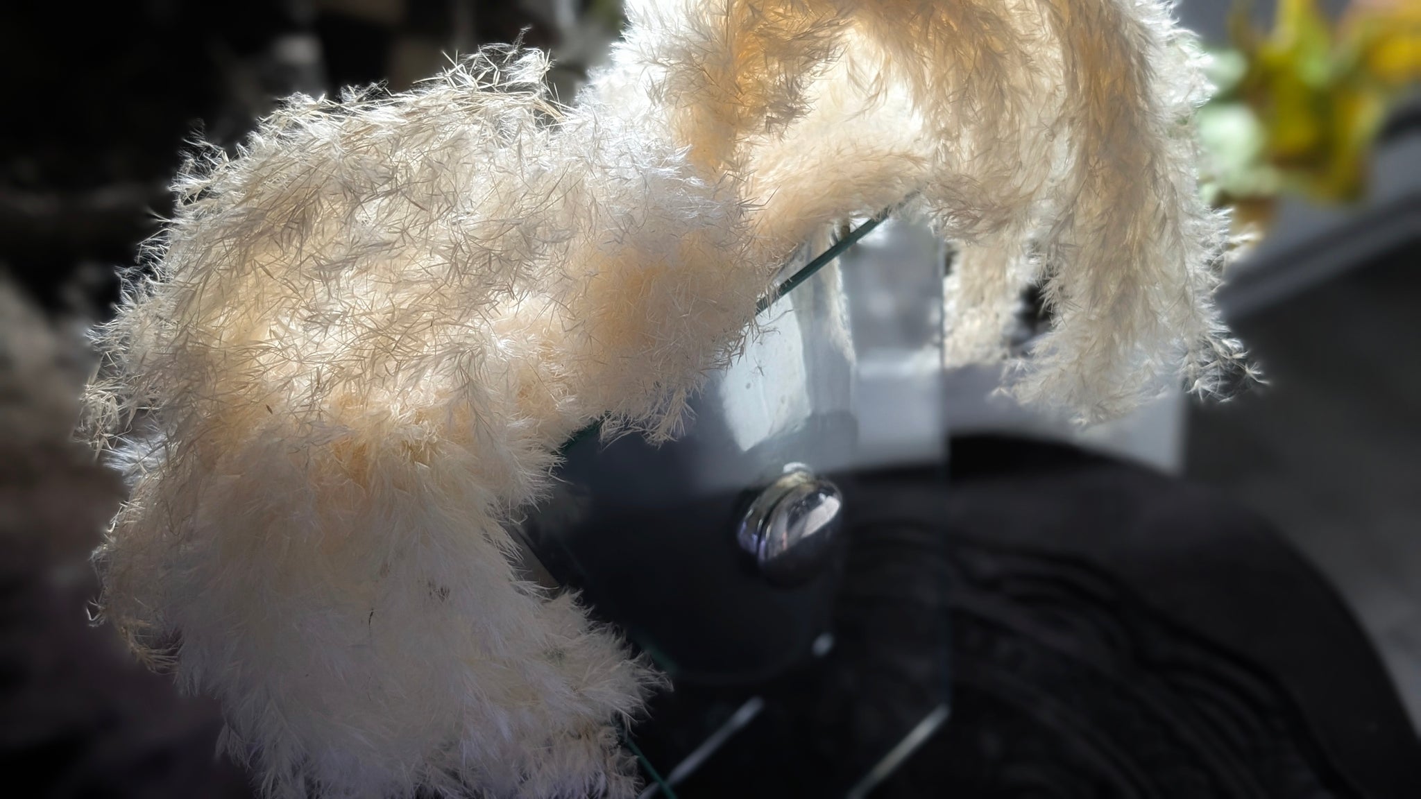 Vintage Glass & Chrome Metal Vase w/ Fluffy Pampas
