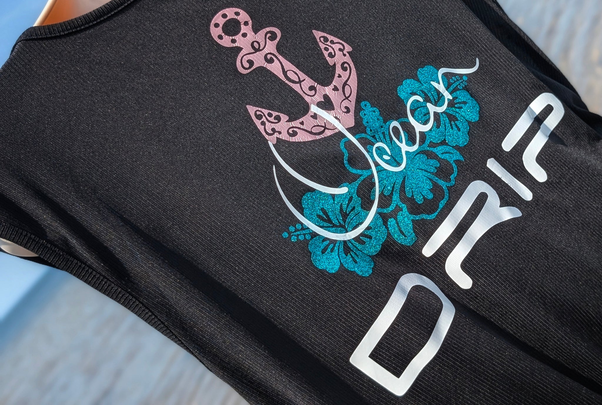 Ocean Drip Black Anchor & Orchid Rouched Dress XXXL
