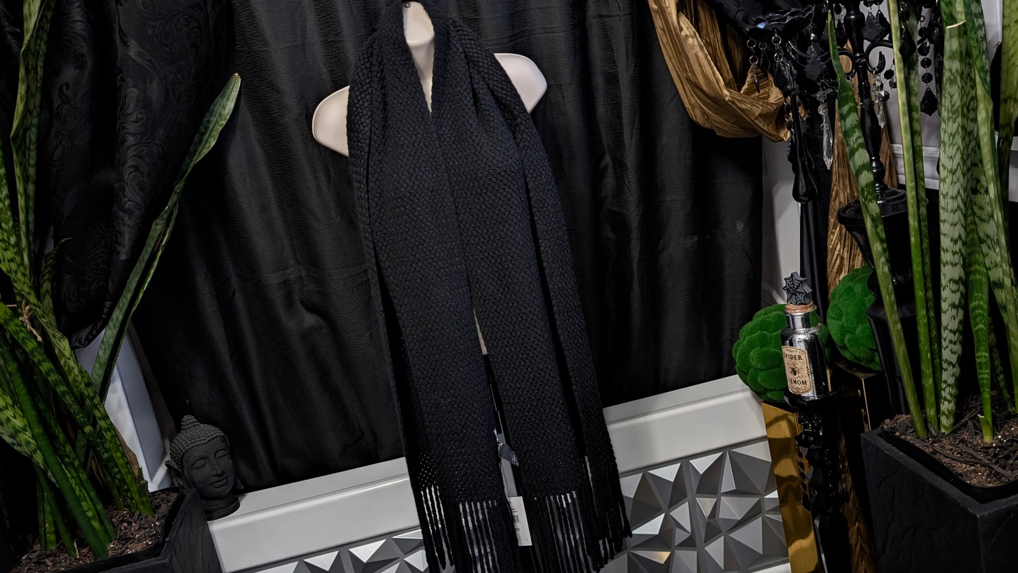 Chaus New York Black Waffle Knit Sweater Scarf NWT
