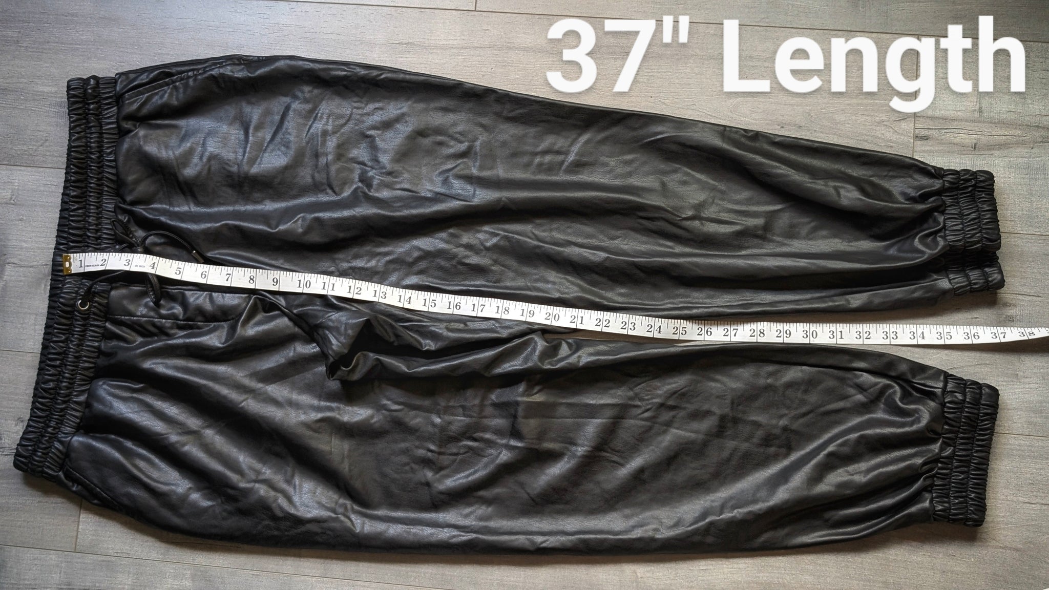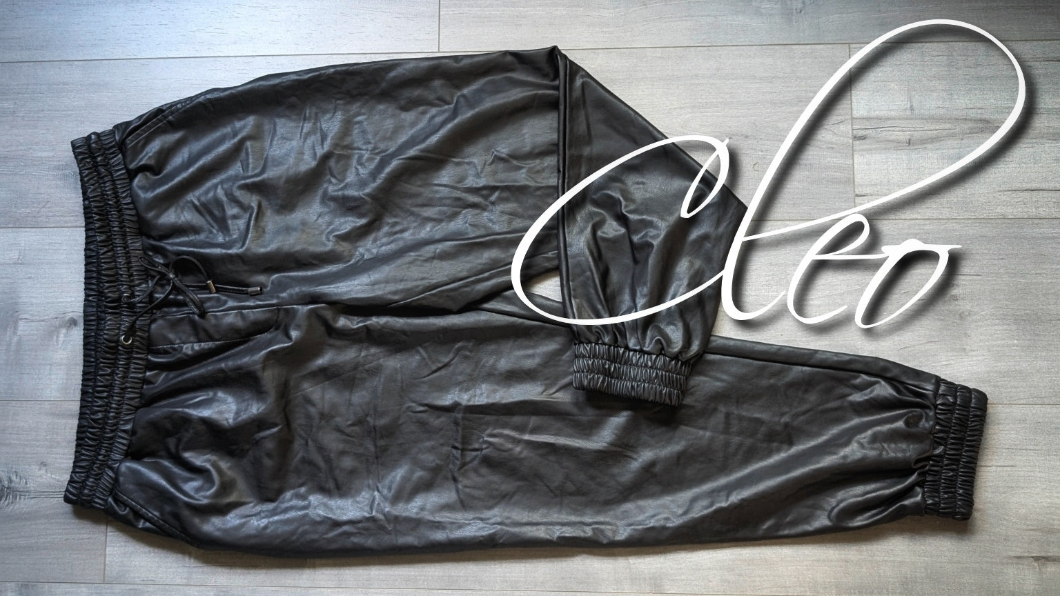 Cleo Black Faux Leather Drawstring Athletic Track Pants LG