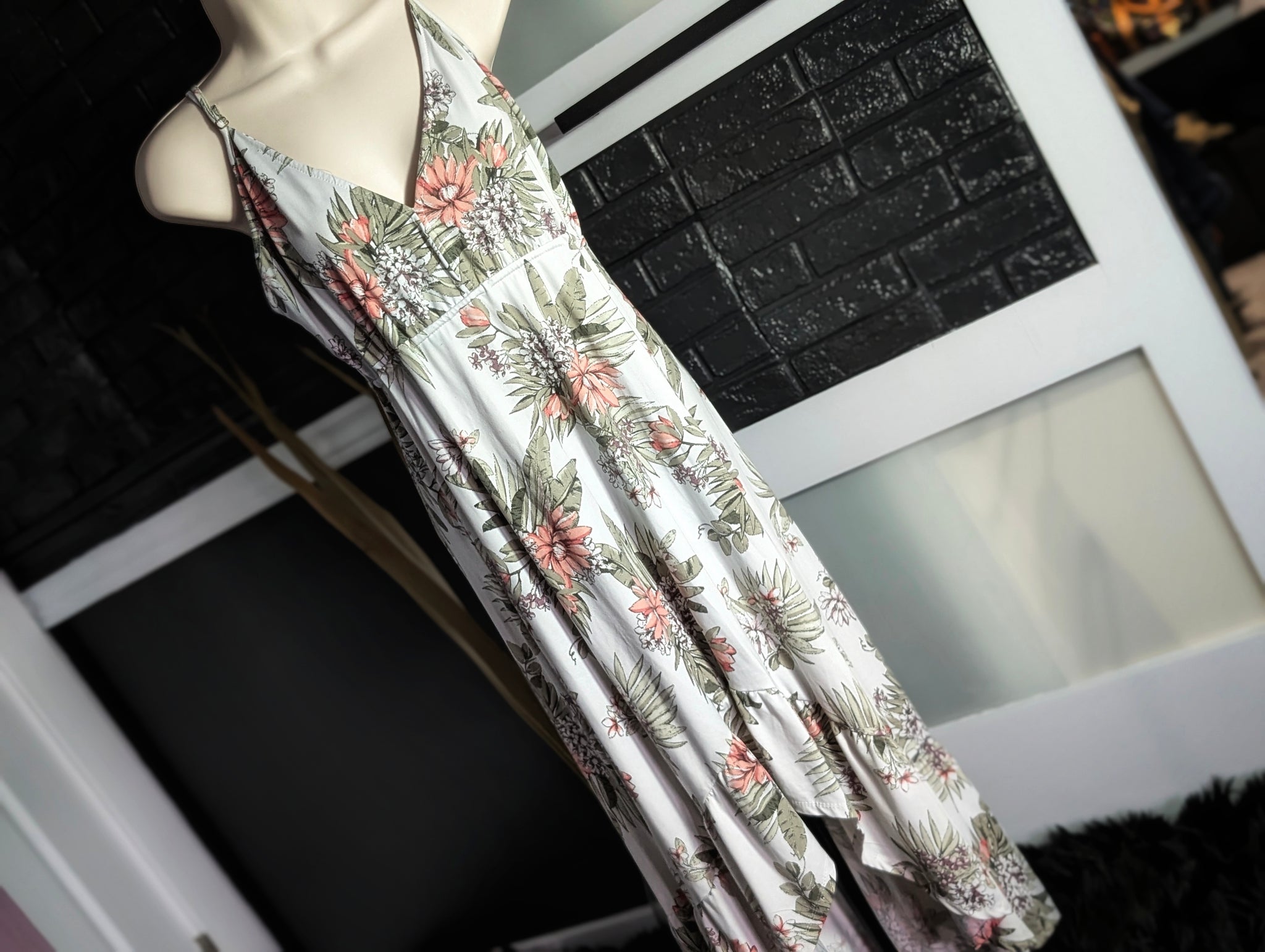 Floral Hi-Low V-Neck Ruffled Dress XL
