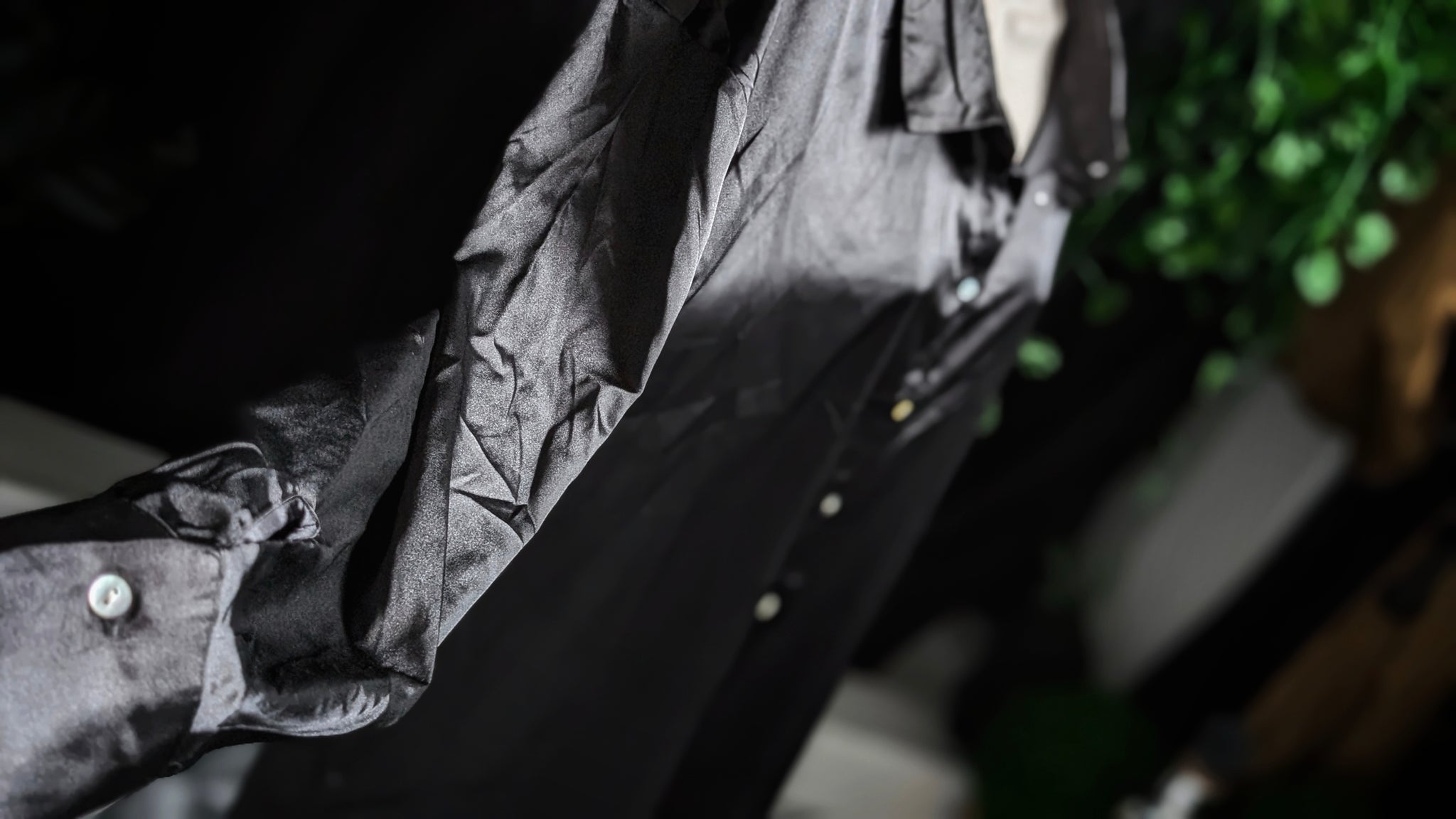 Fred David Black Silky Satin Blouse LG
