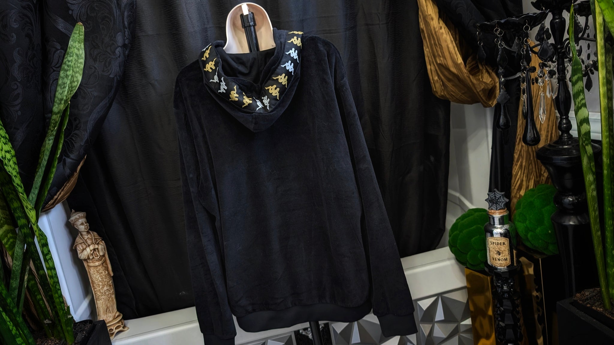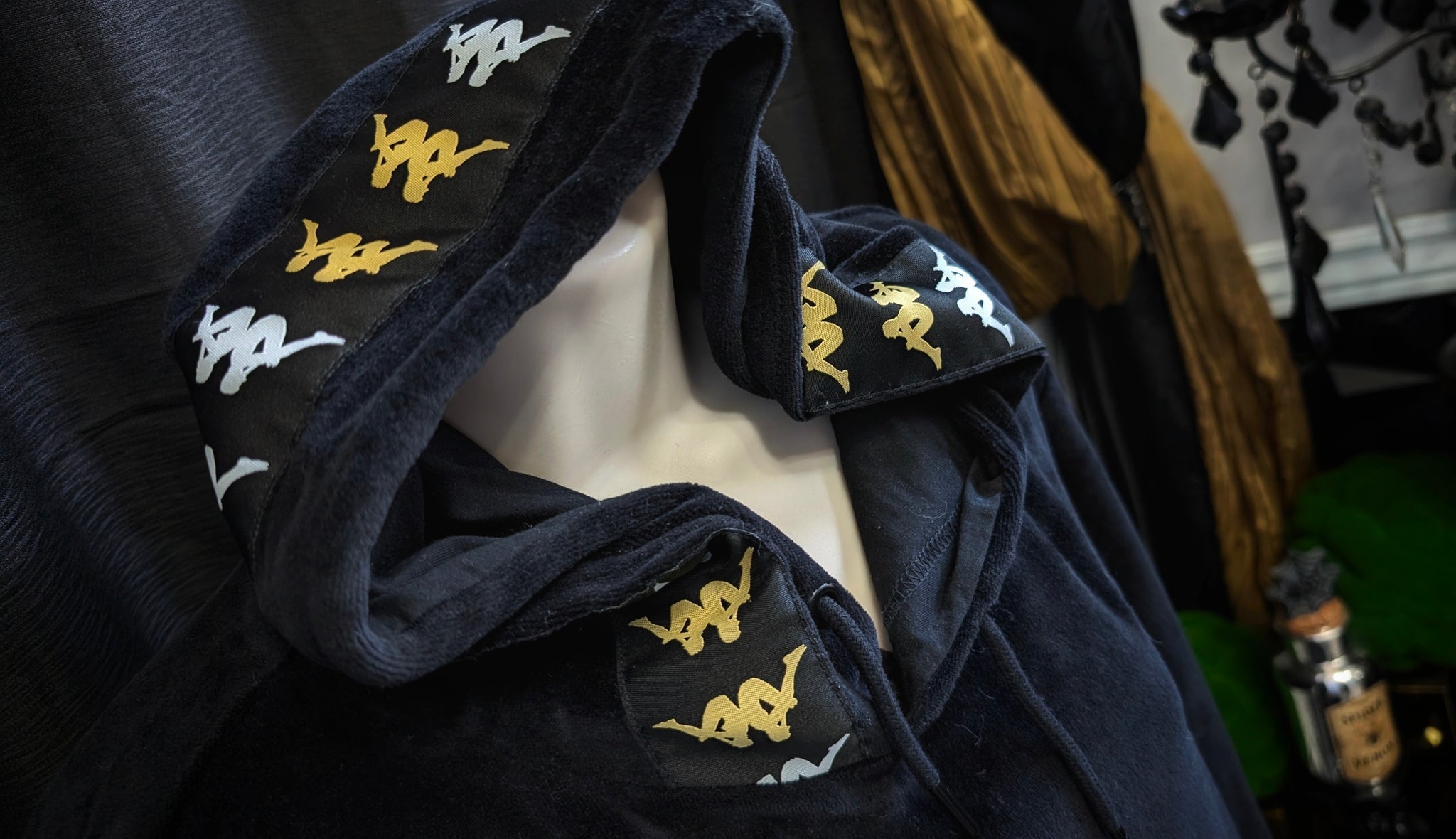 Kappa Black & Gold Velour & Satin Hoodie Sweater XL