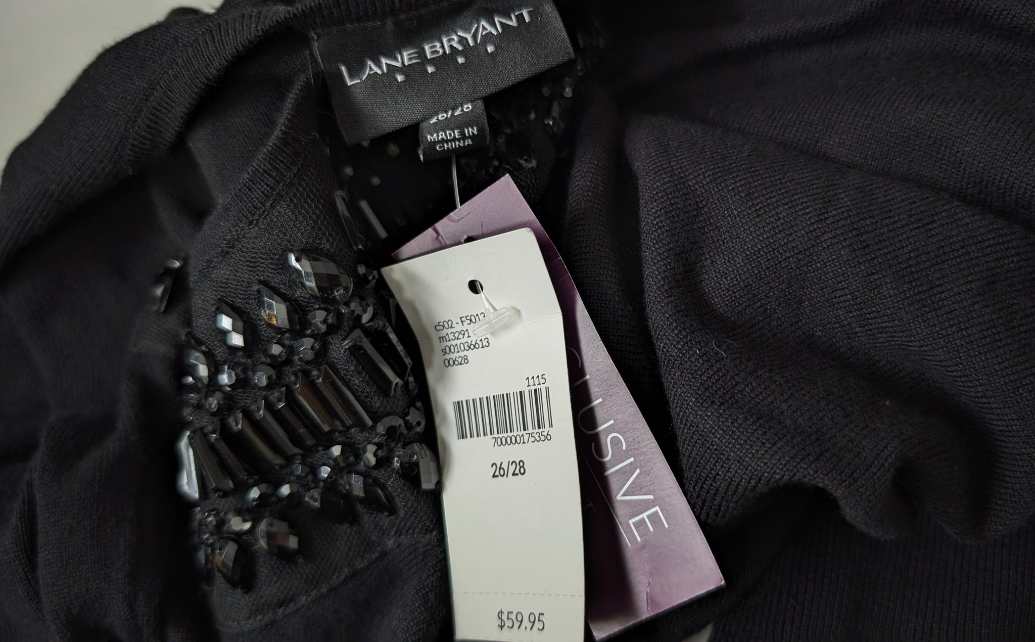 Lane Bryant Black Cowl Beaded Long Sweater XL-2XL