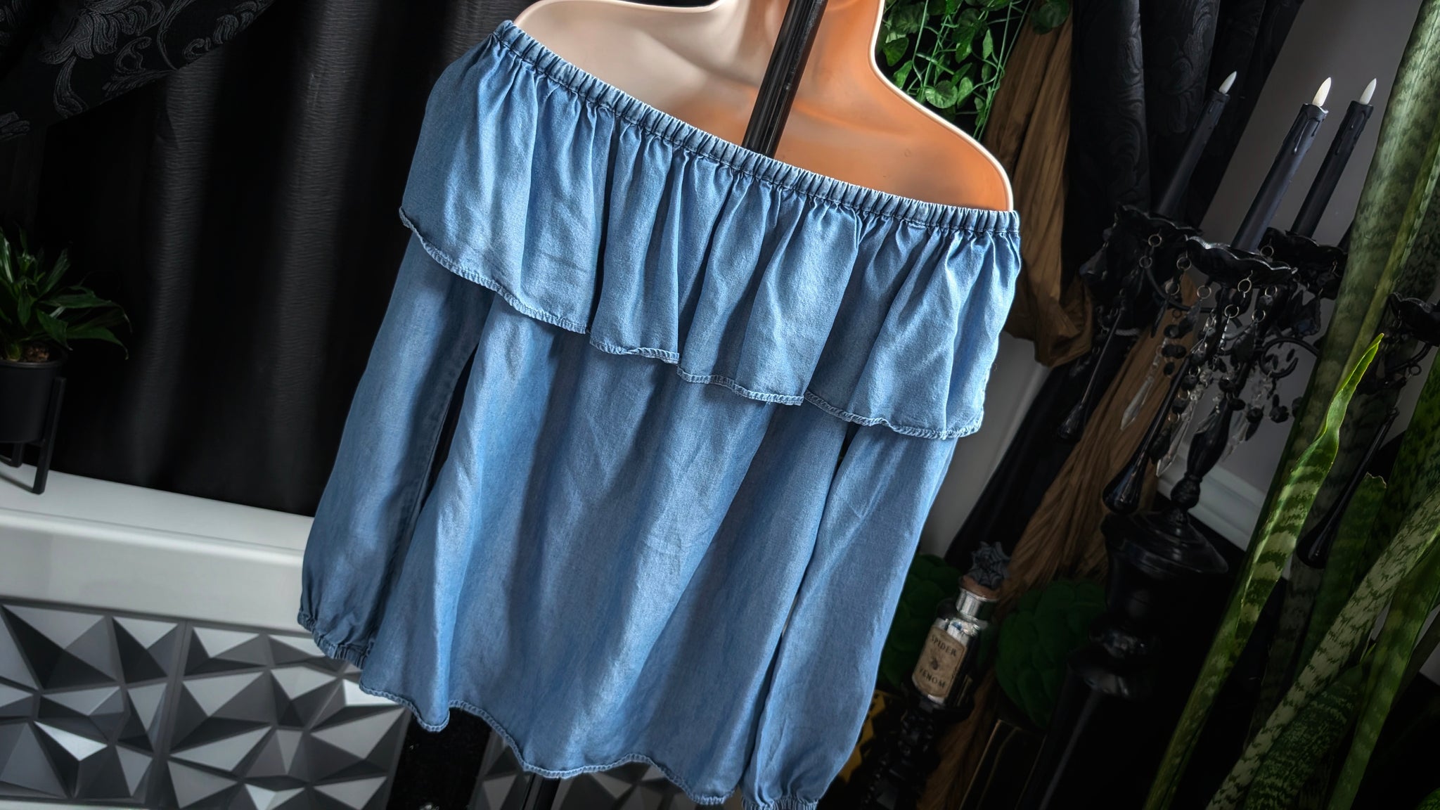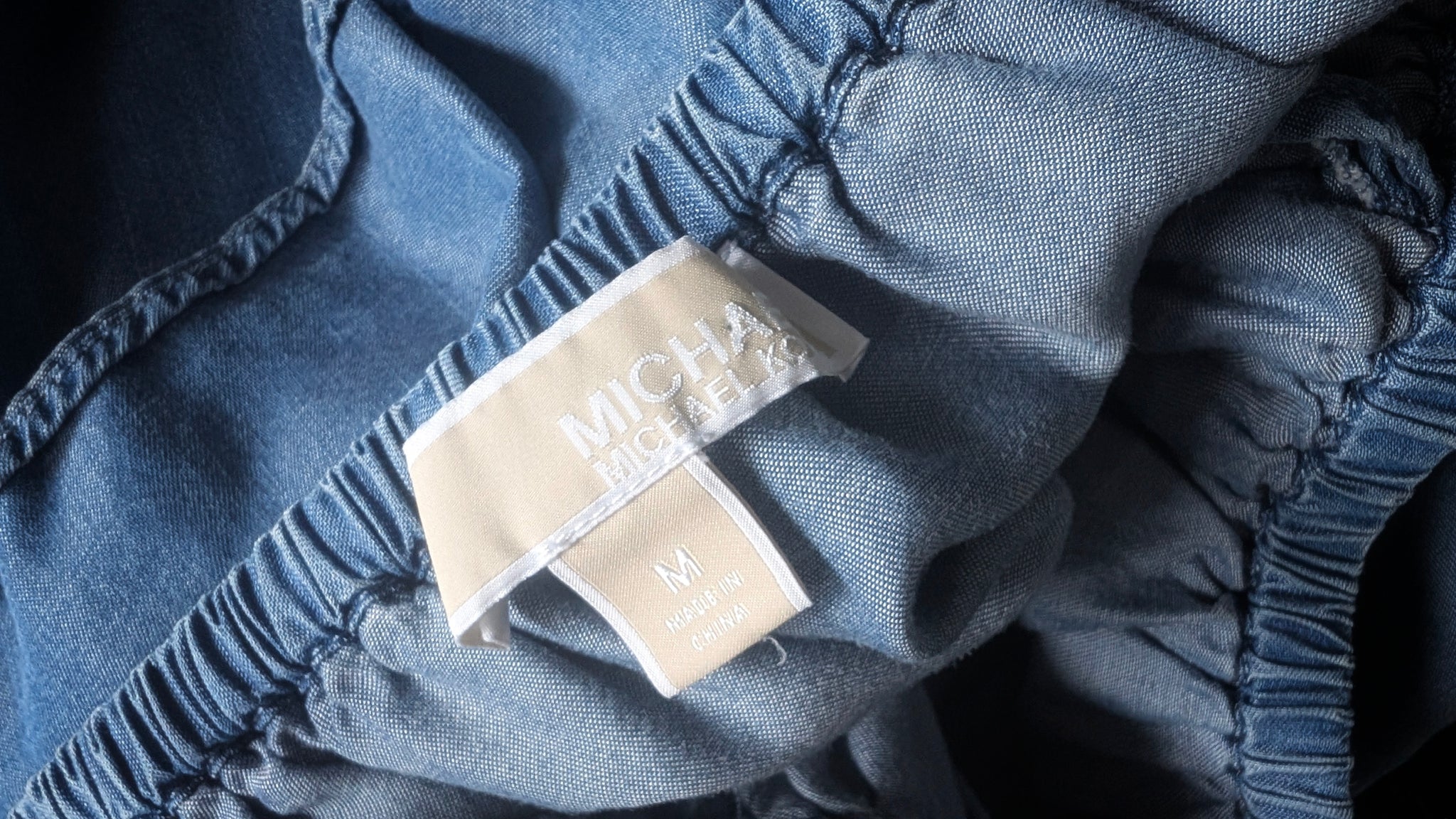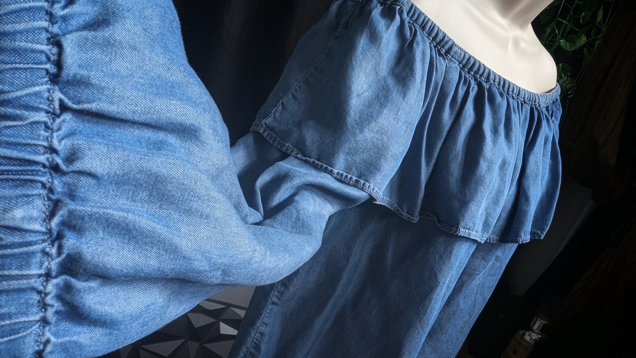 Michael Kors Denim Look Off Shoulder Ruffle Top MD