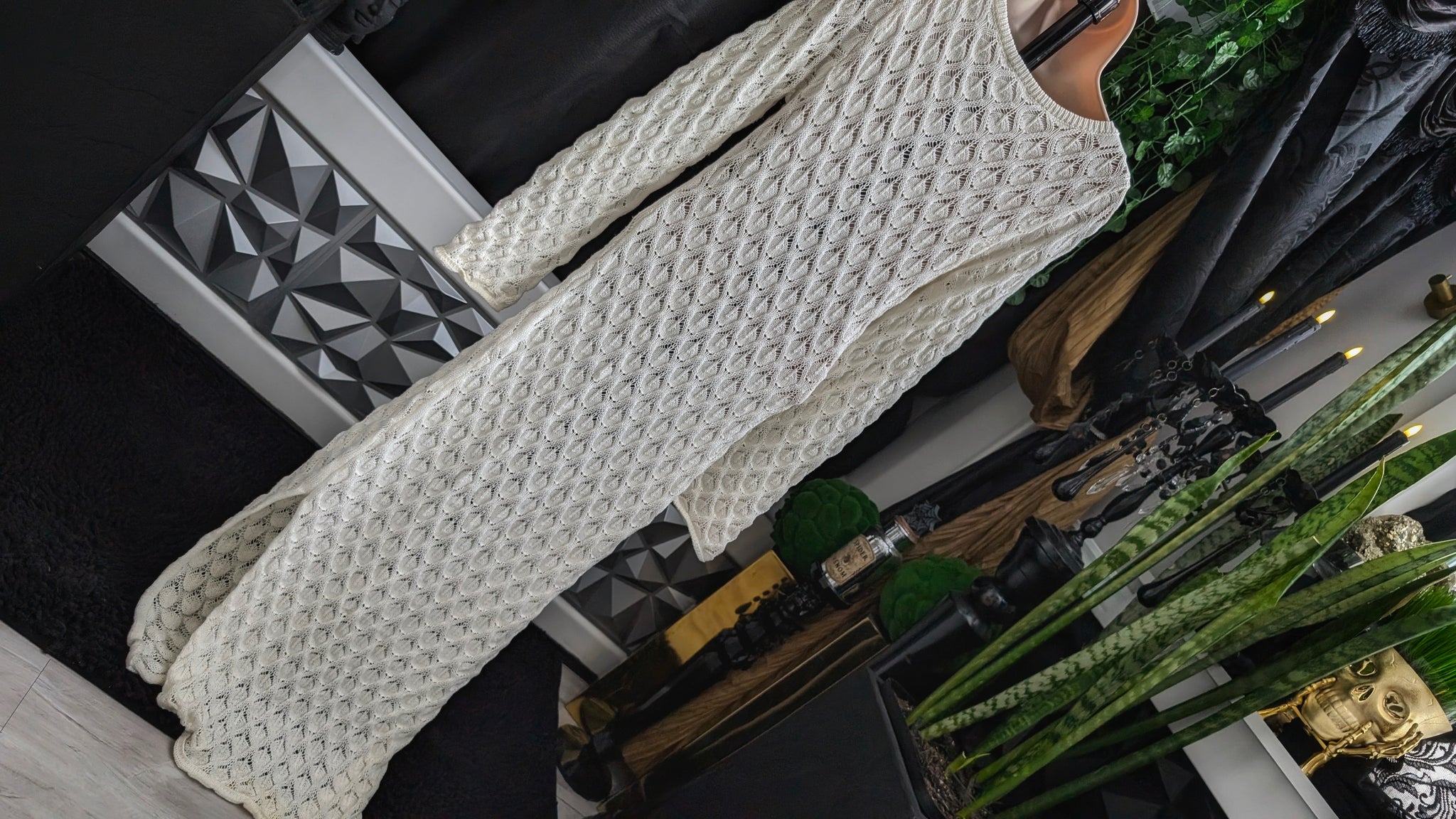 Olive & Oak Ivory Long Mesh Knit Cover Up Beach Dress LG