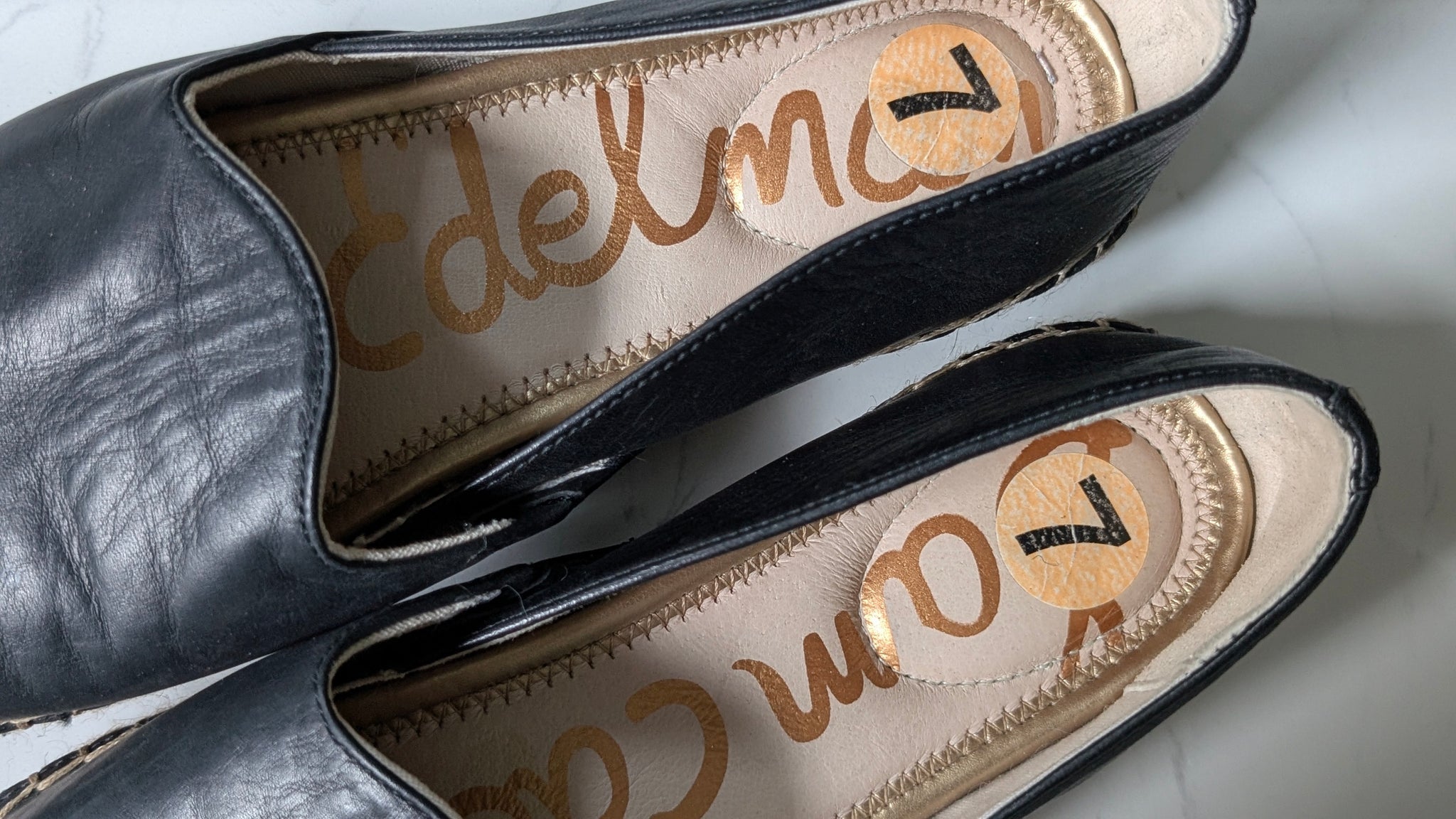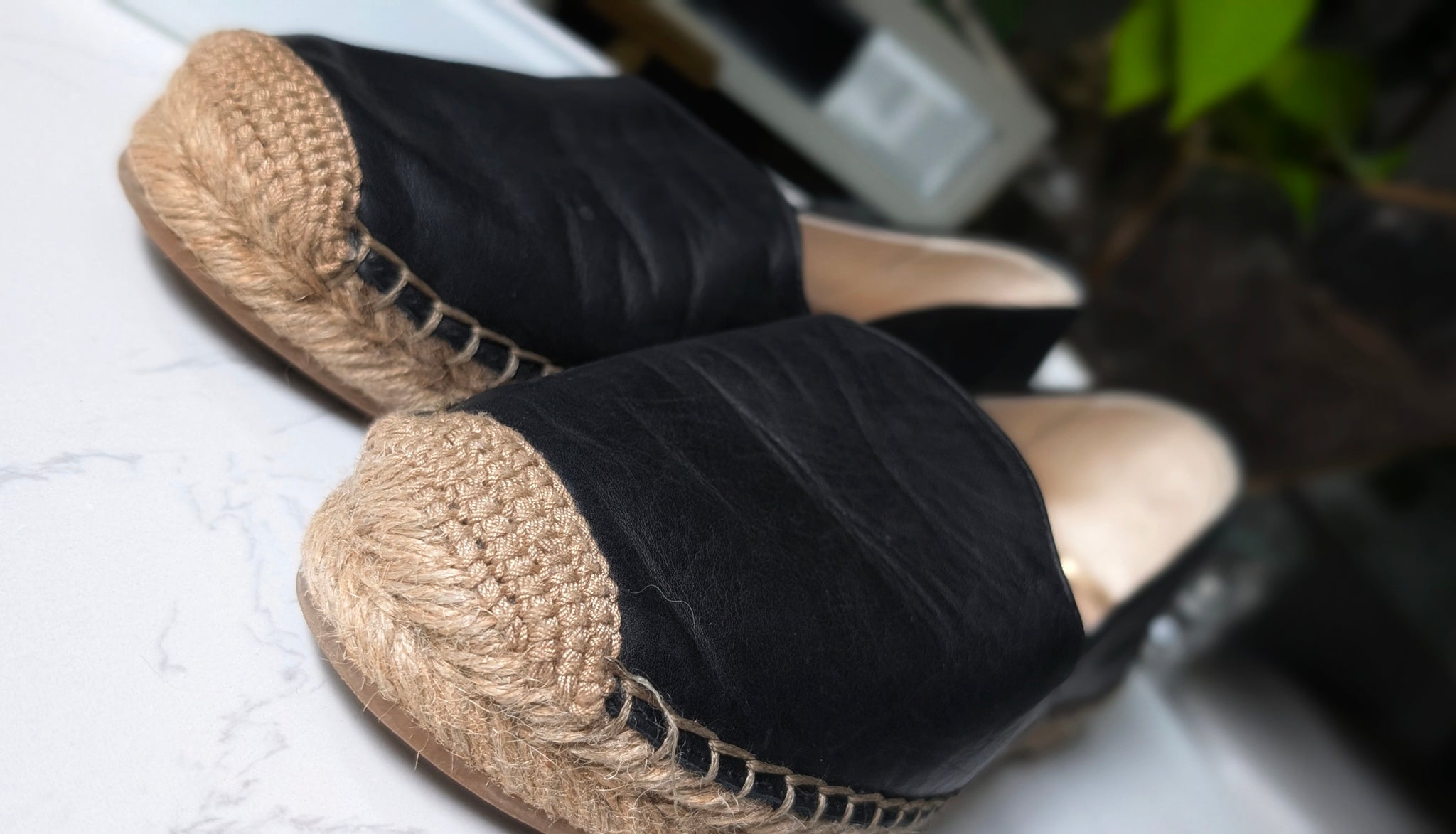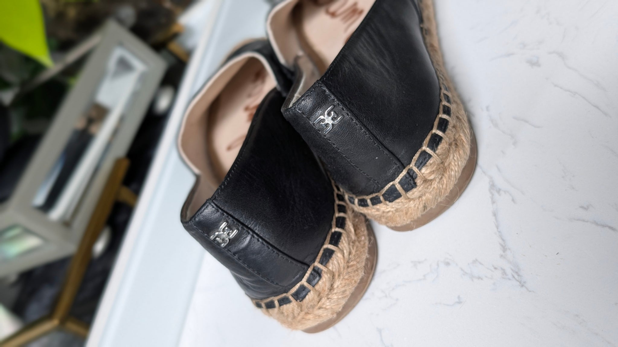 Sam Edelman Black Leather Espadrille Jute Loafer Shoes Flats sz7