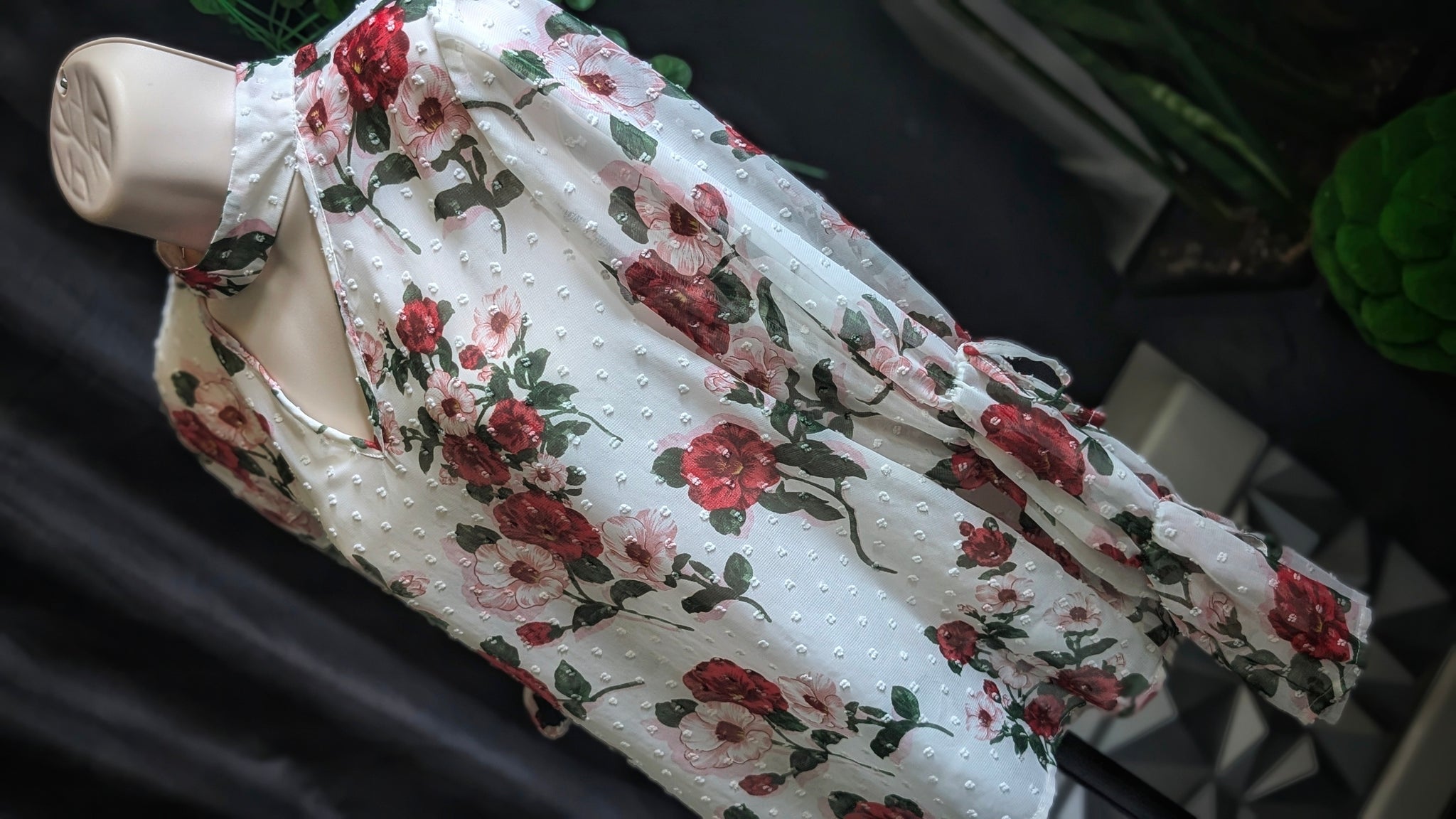 Sheer Boho Sleeve White Floral Blouse Top MD-LG