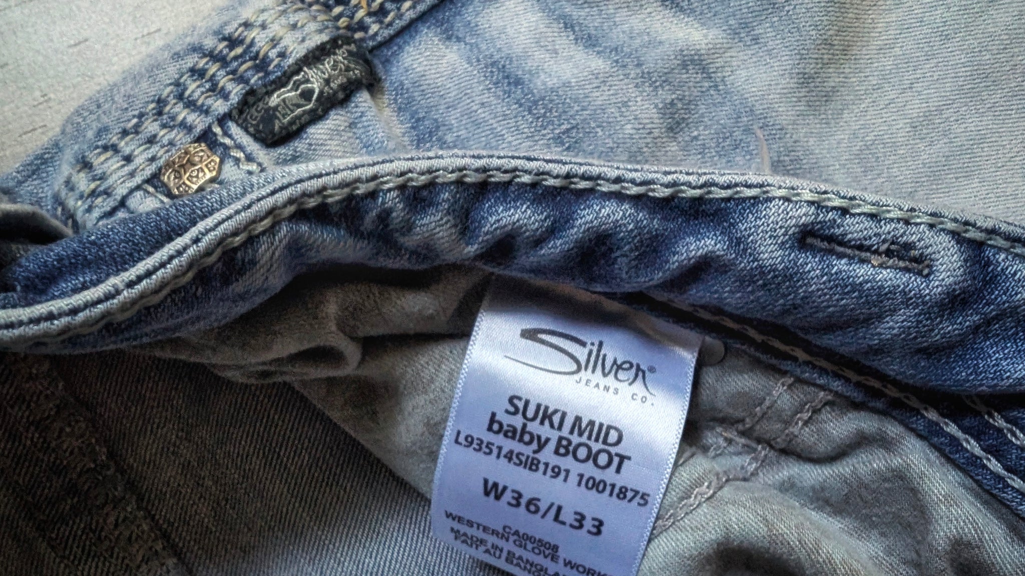 Silver 925 Women's Suki Mid Baby Boot Denim Acid Wash Jeans 36/33