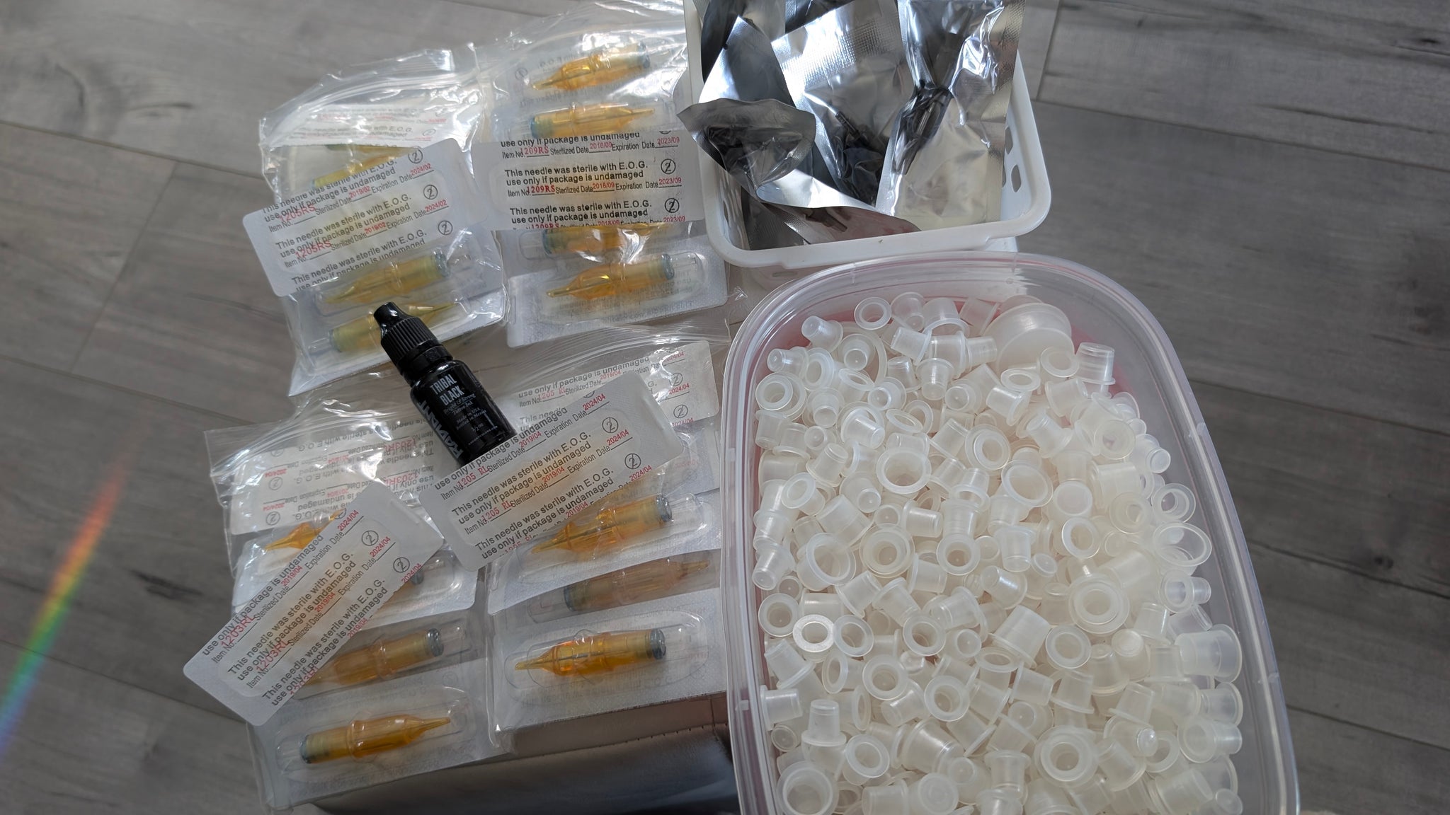 Tattoo Needle Cartridges, Ink , Dental Bibs, Caps (expired so only good for practise skin)