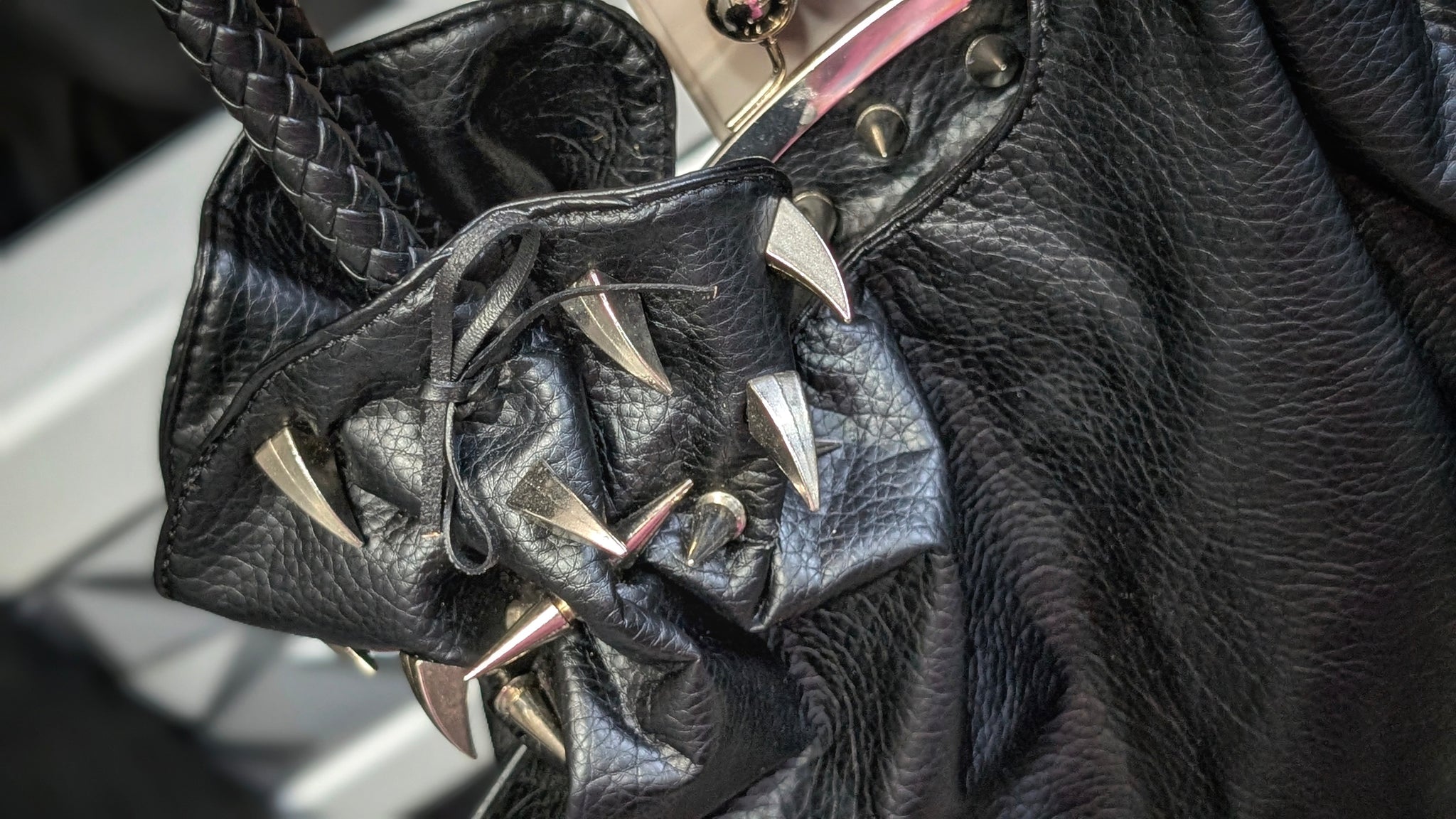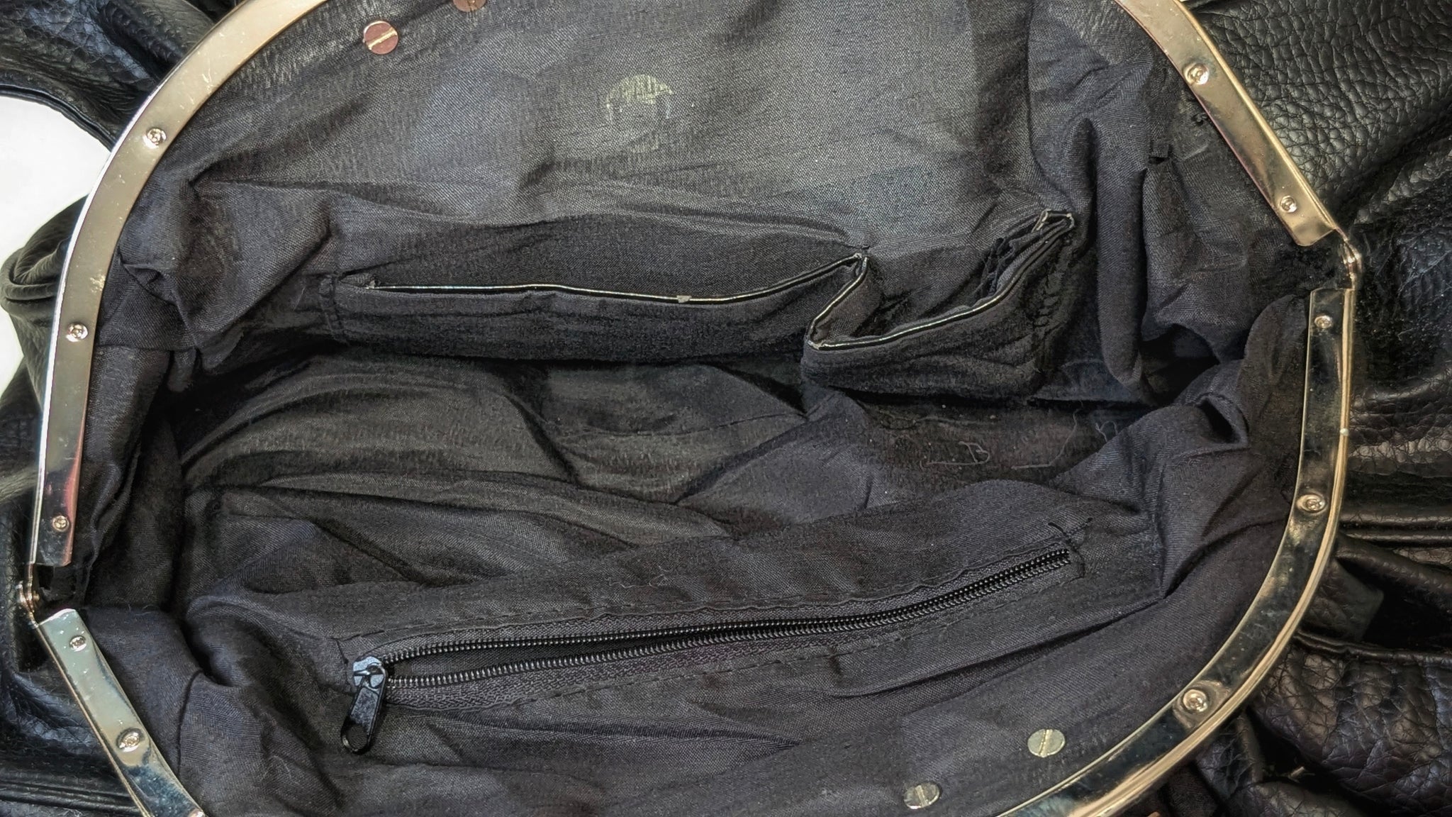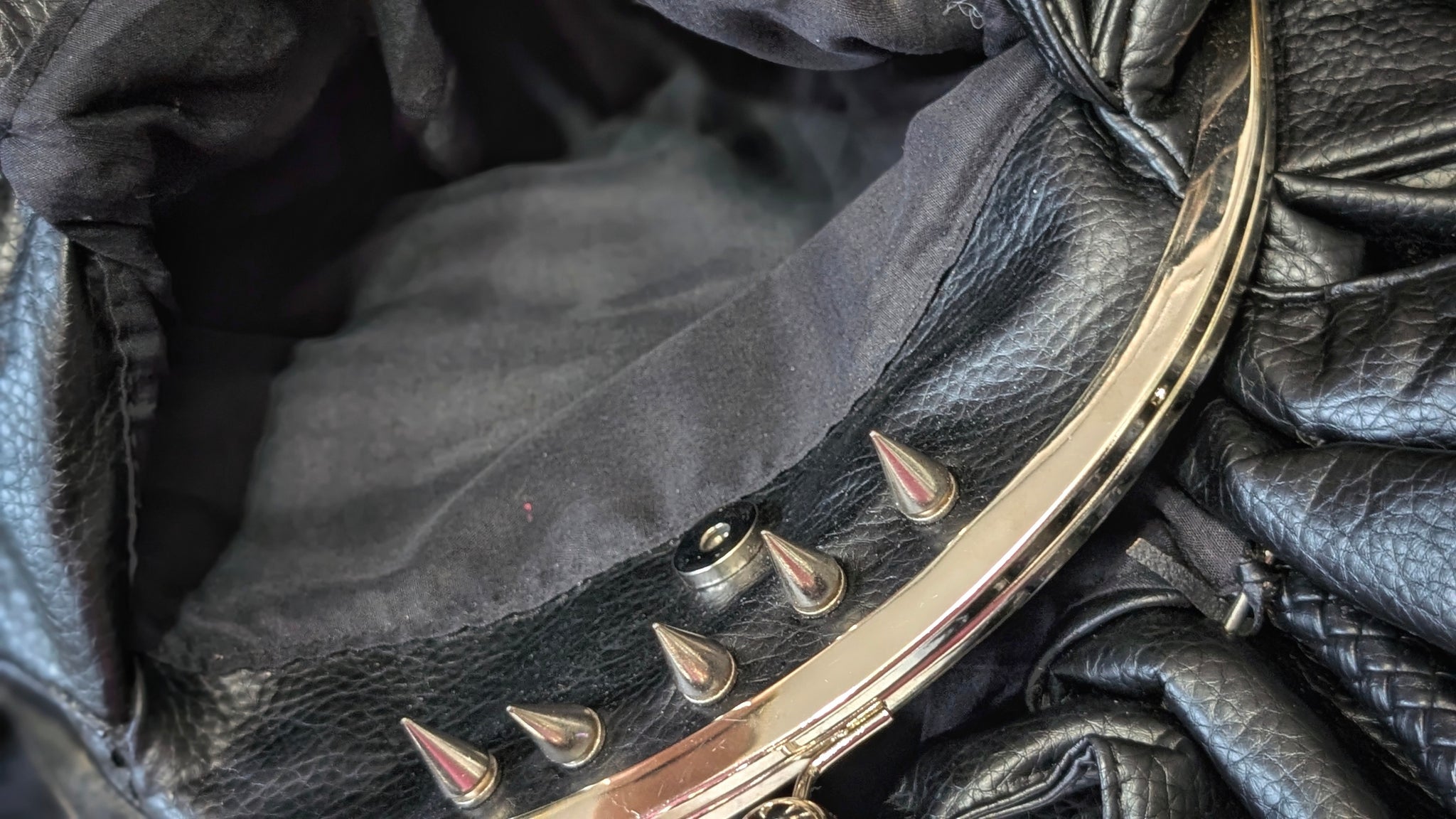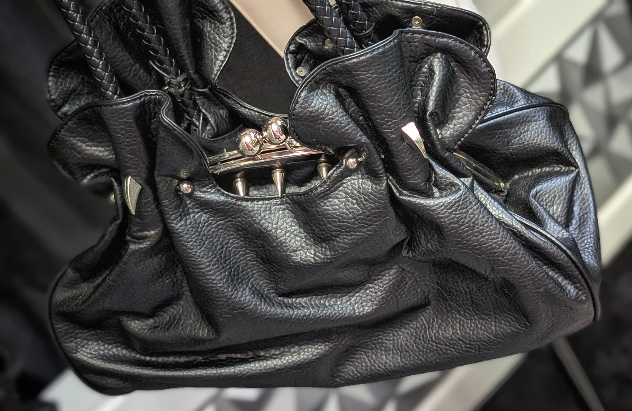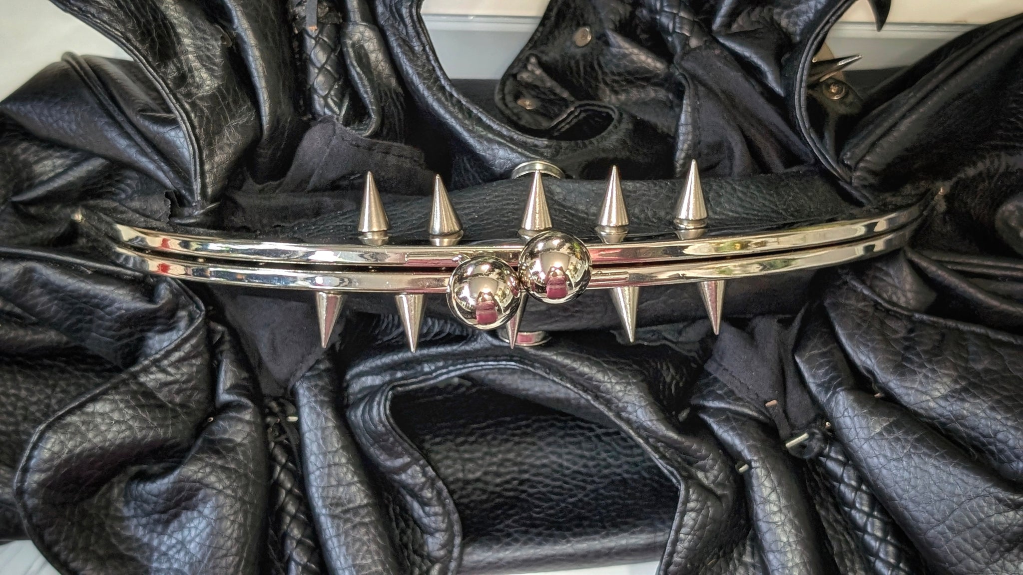Vintage Leather Spiked Ruffle Ball Clasp Hobo Purse Bag