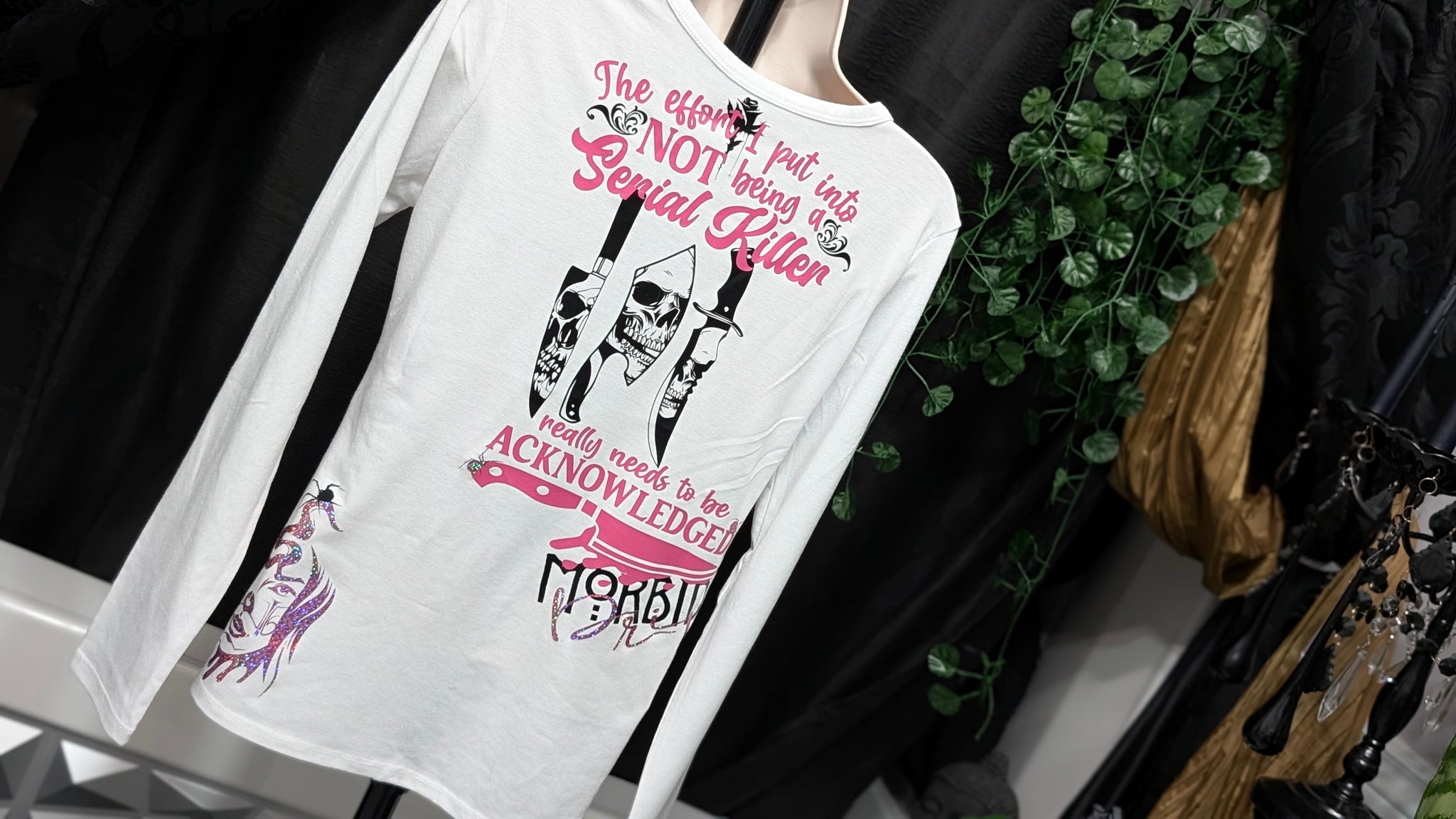 White Gothic Glitter Vixen & Morbid Drip Combo Shirt MD
