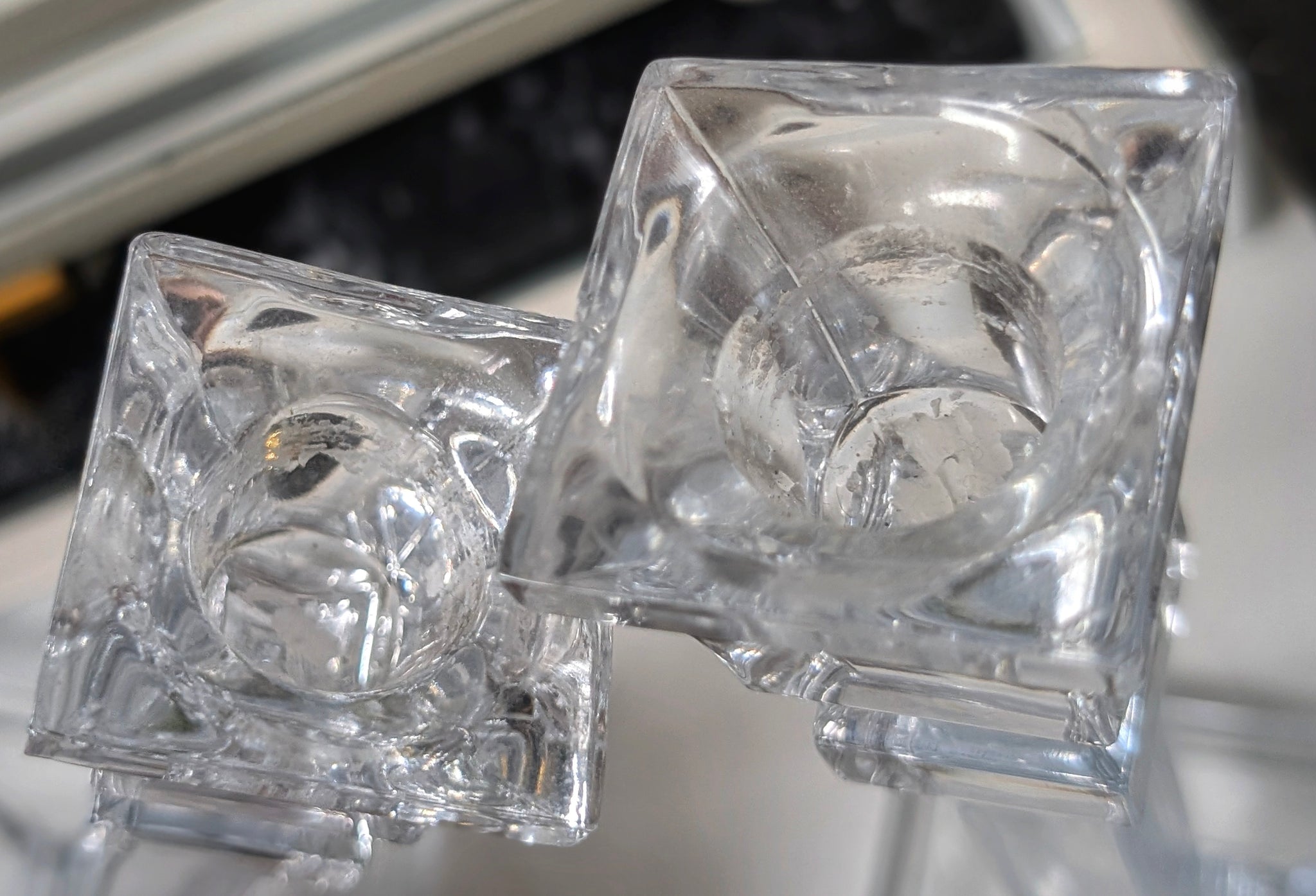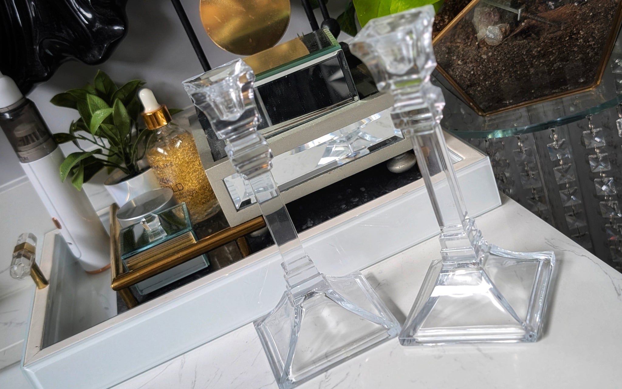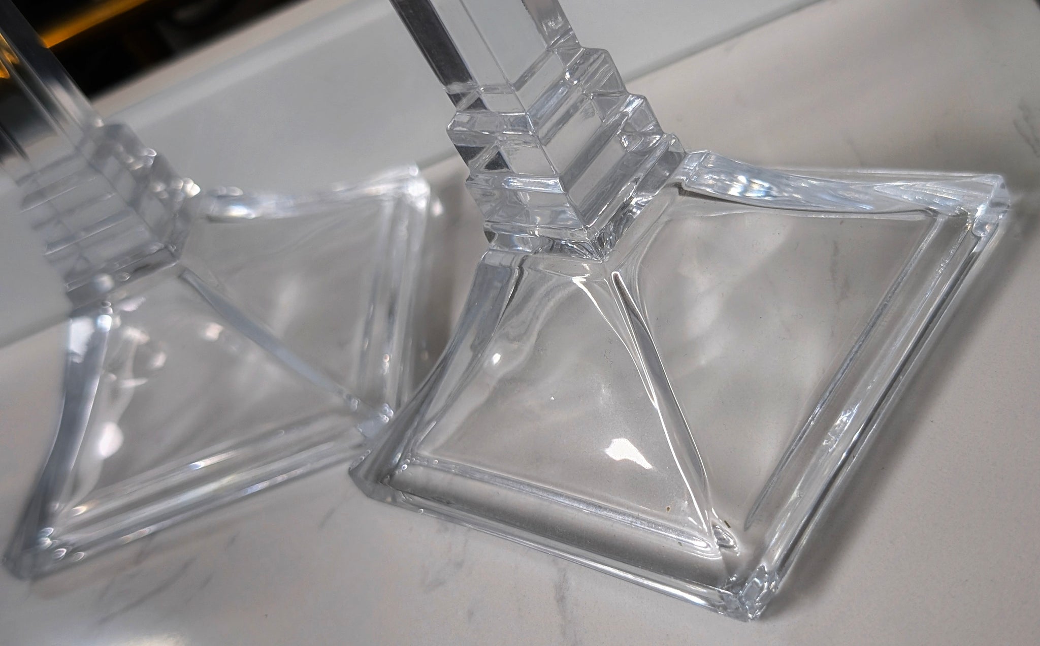 10" Glass Taper Candle Holders x2 (one has chip)