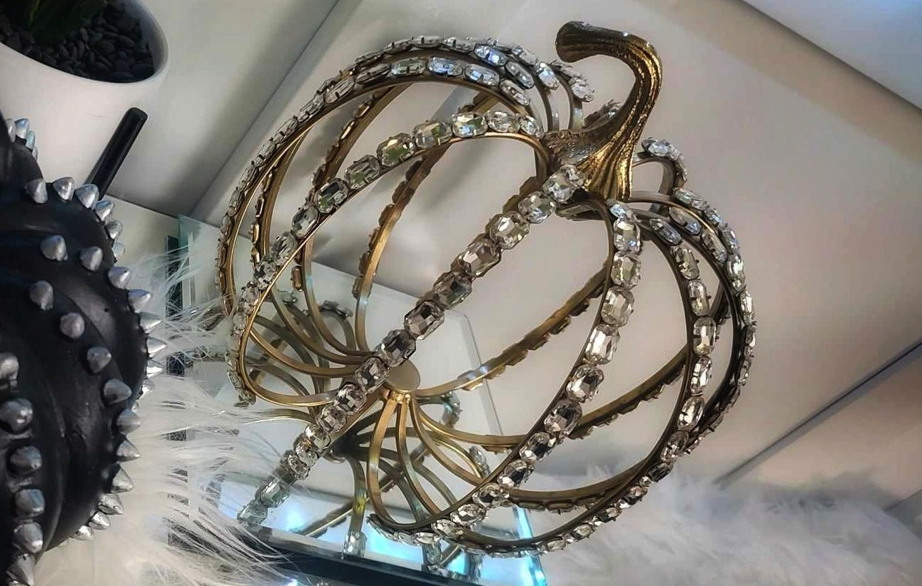12" Rhinestone Crystal Gold Bling Cinderella Pumpkin Decor