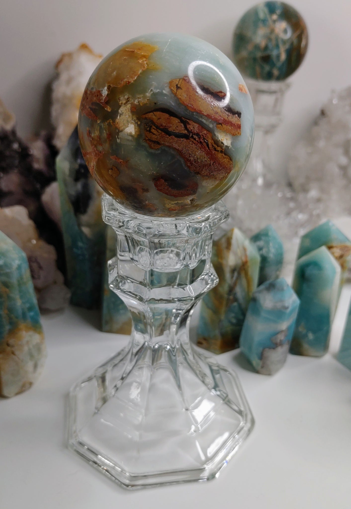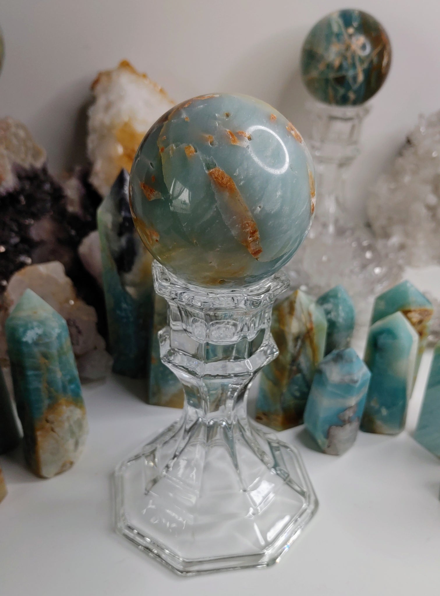 2-2.5" Amazonite Crystal Sphere with Glass Stand