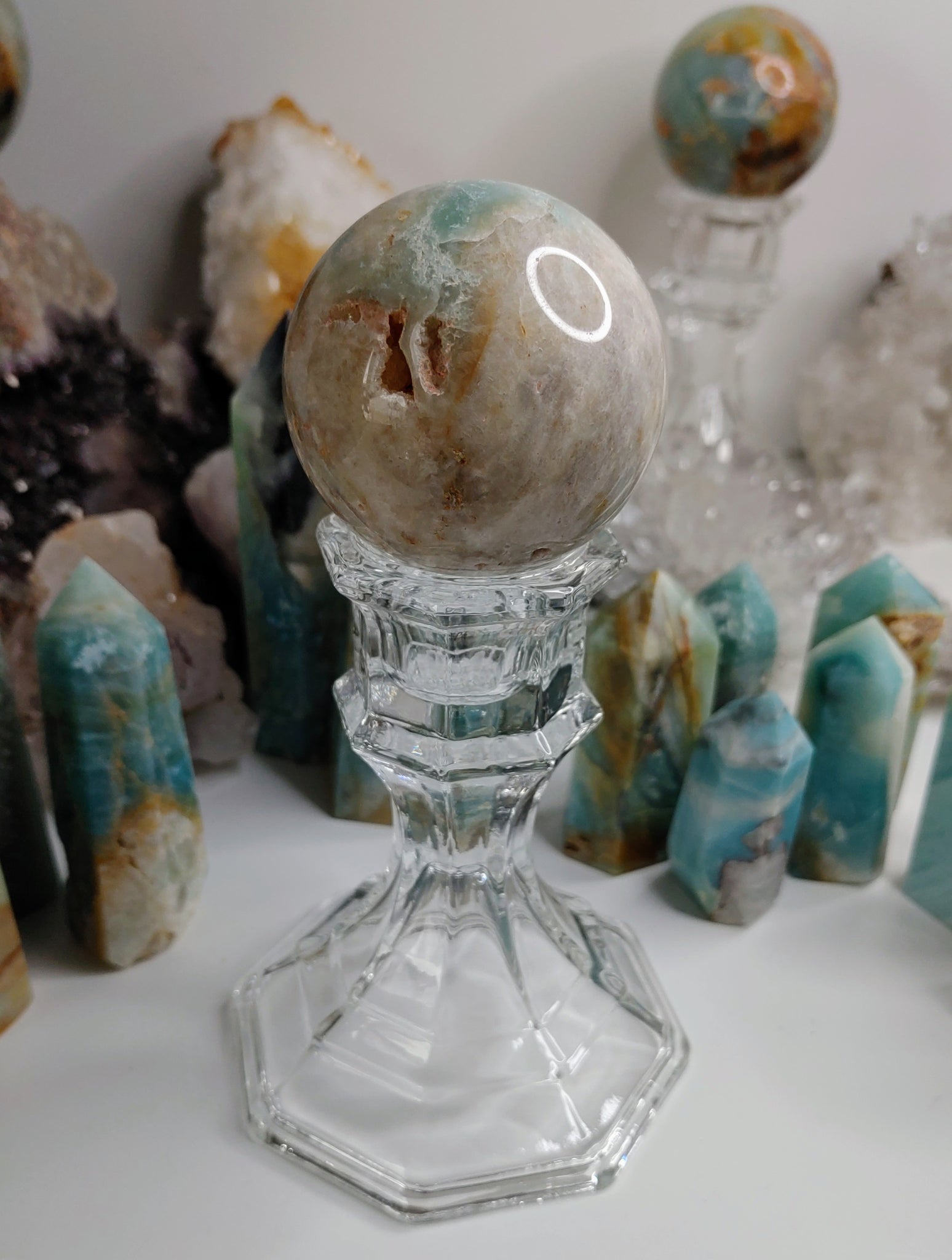 2-2.5" Amazonite Crystal Sphere with Glass Stand