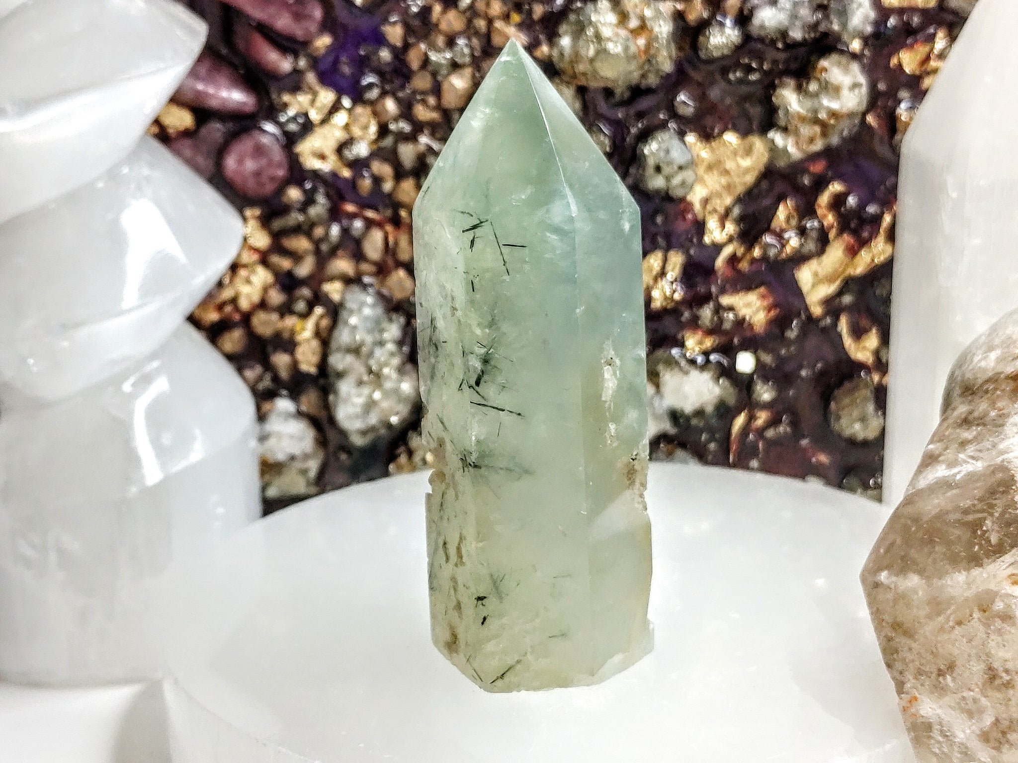 2.5" Epidote in Prehnite Crystal Pillar Tower