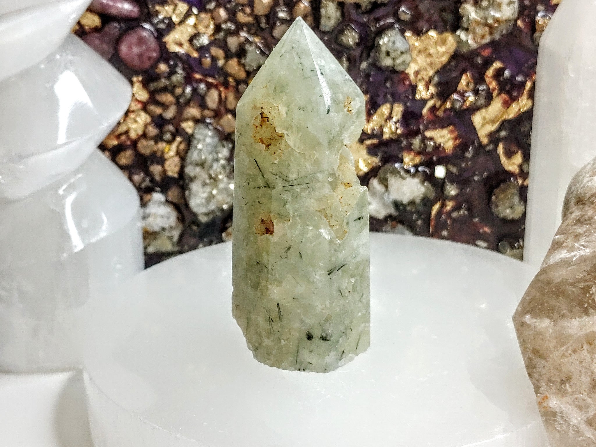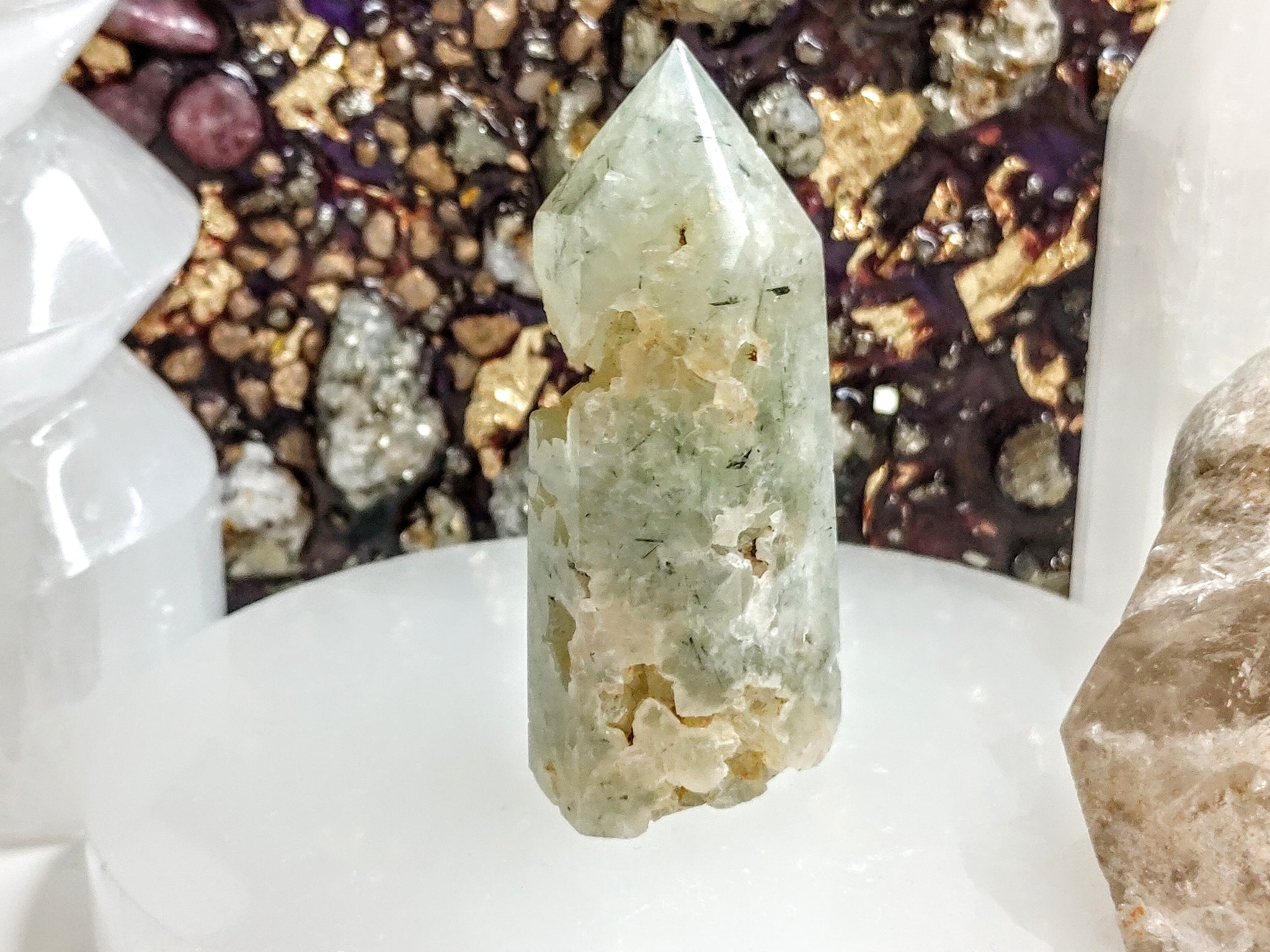 2.5" Epidote in Prehnite Crystal Pillar Tower