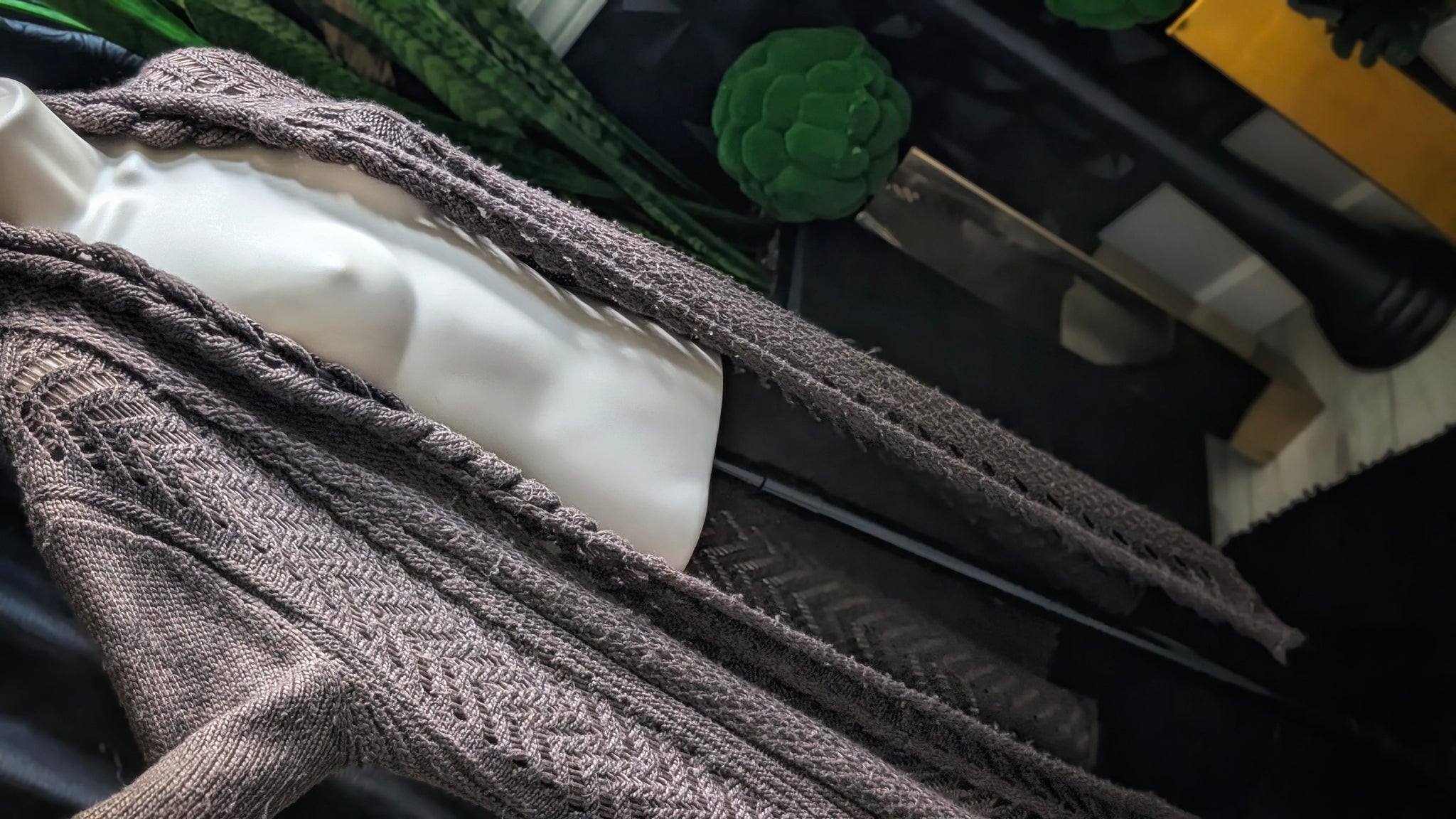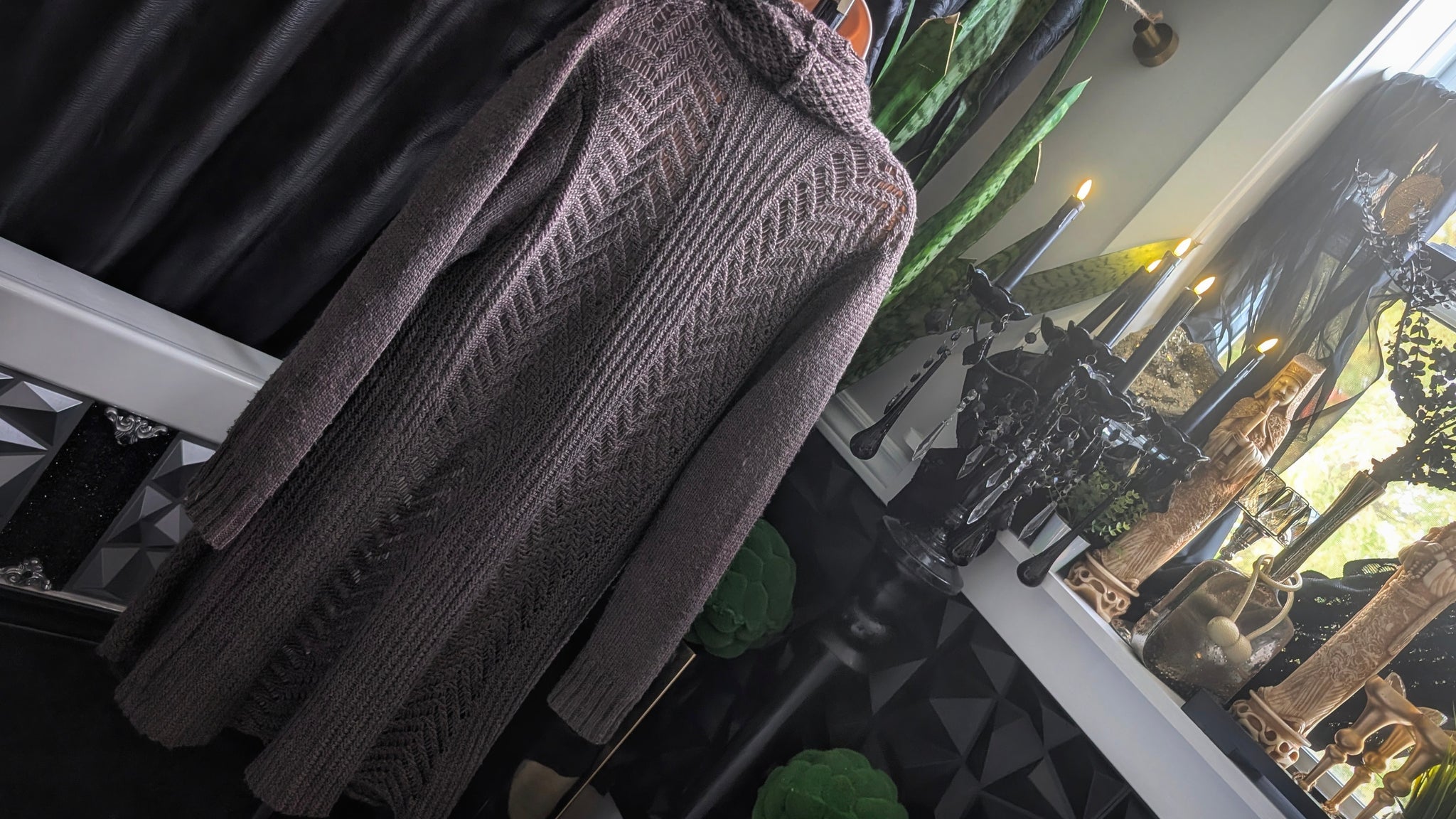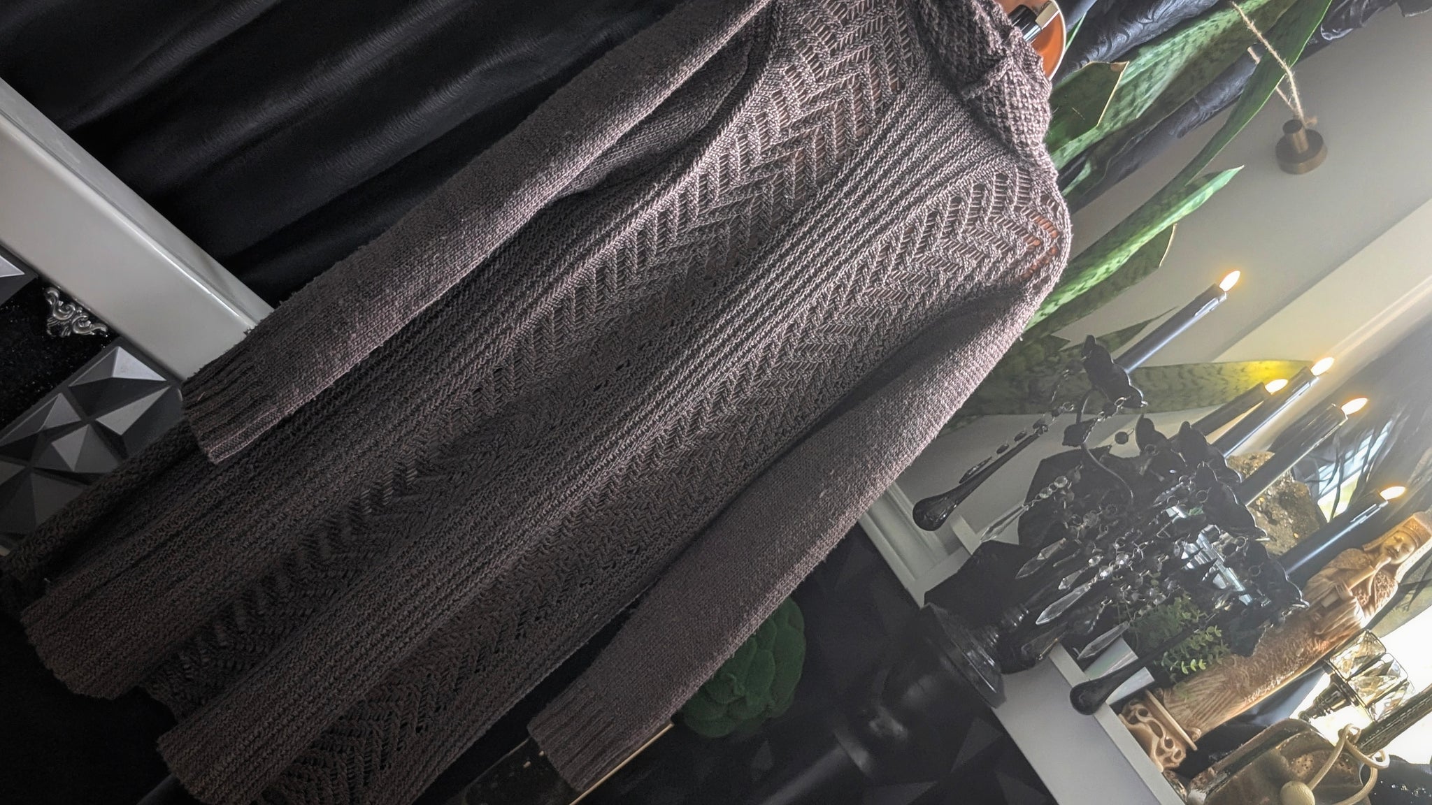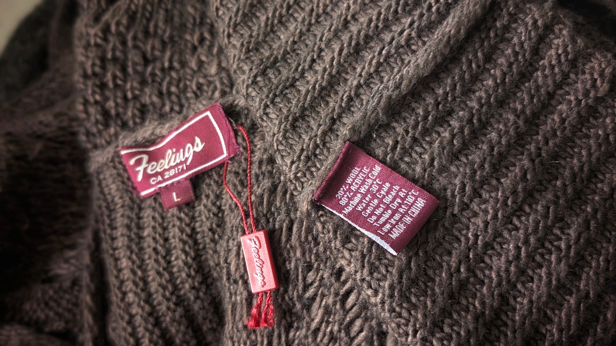 "Feelings" Brown Cable Knit Sweater Cardigan LG NEW