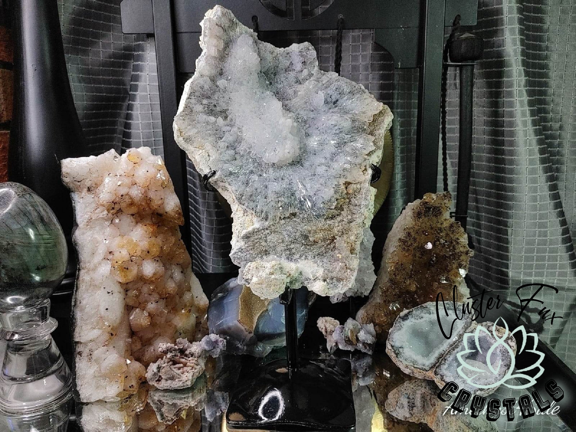 • Load image into Gallery viewer, 12" Flower Amethyst Crystal Cluster on Stand