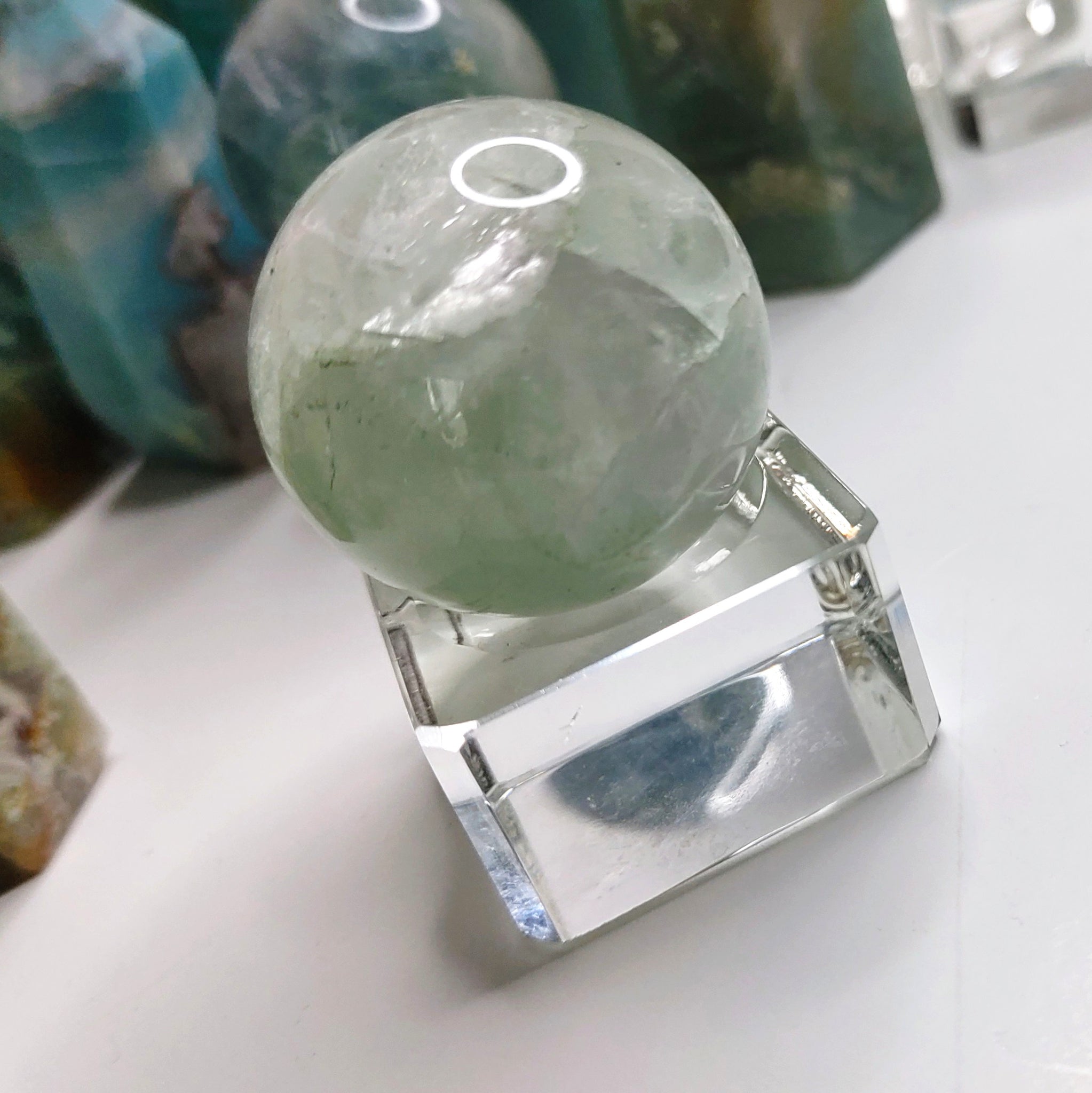 1-1.5" Rainbow Fluorite Sphere with Acrylic Stand