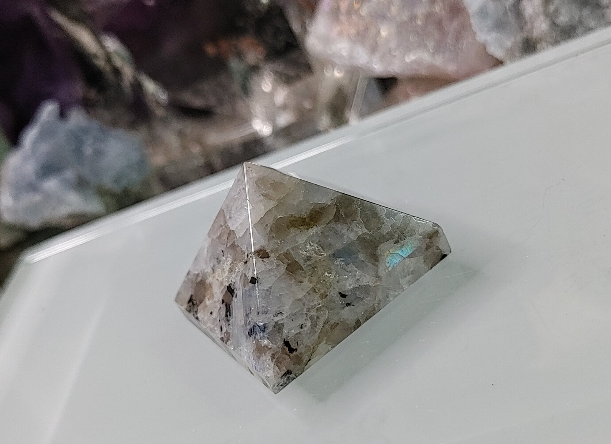 1" Rainbow Moonstone Crystal Gemstone Mini Pyramid